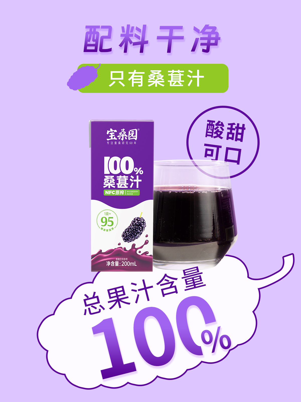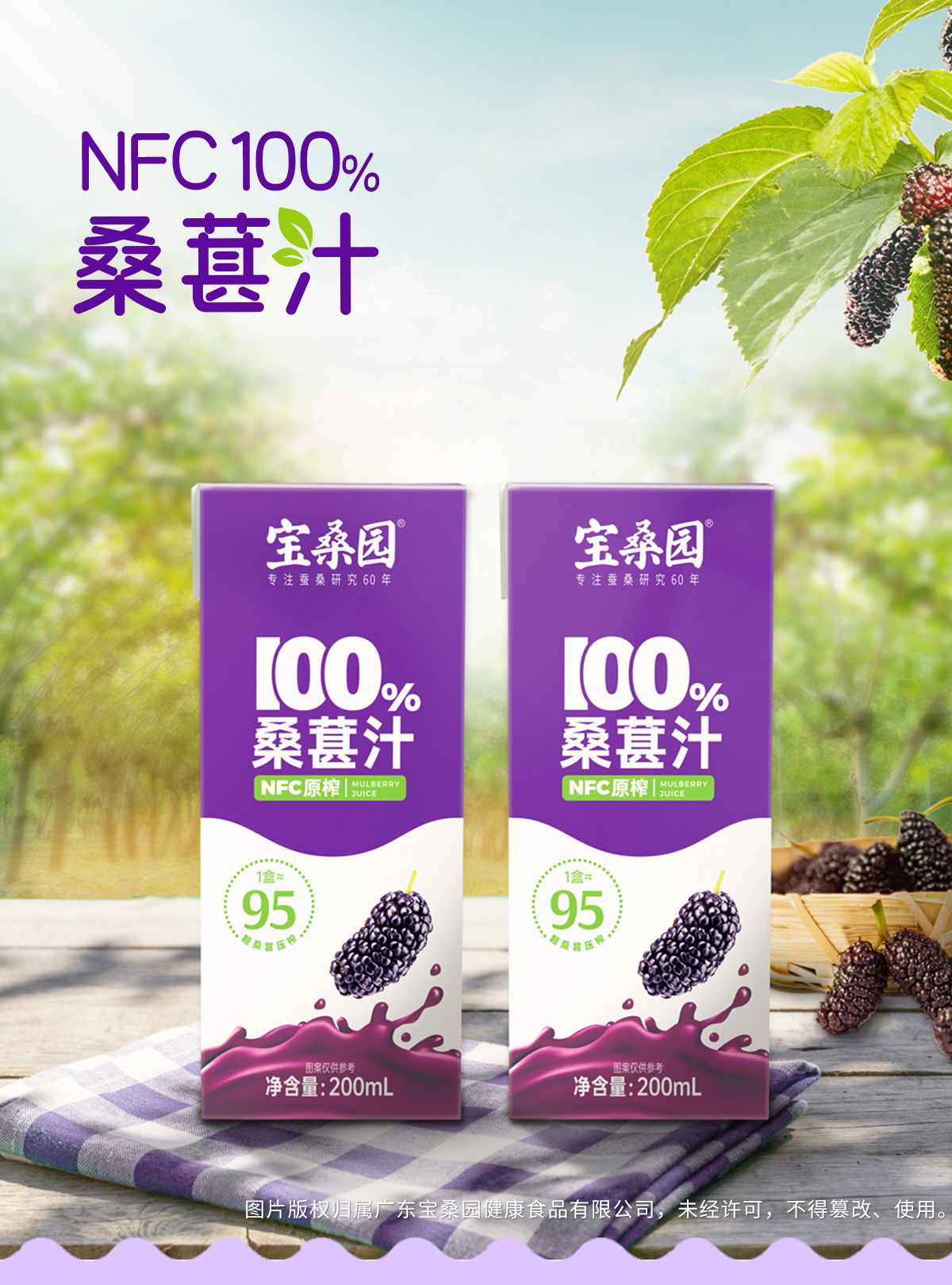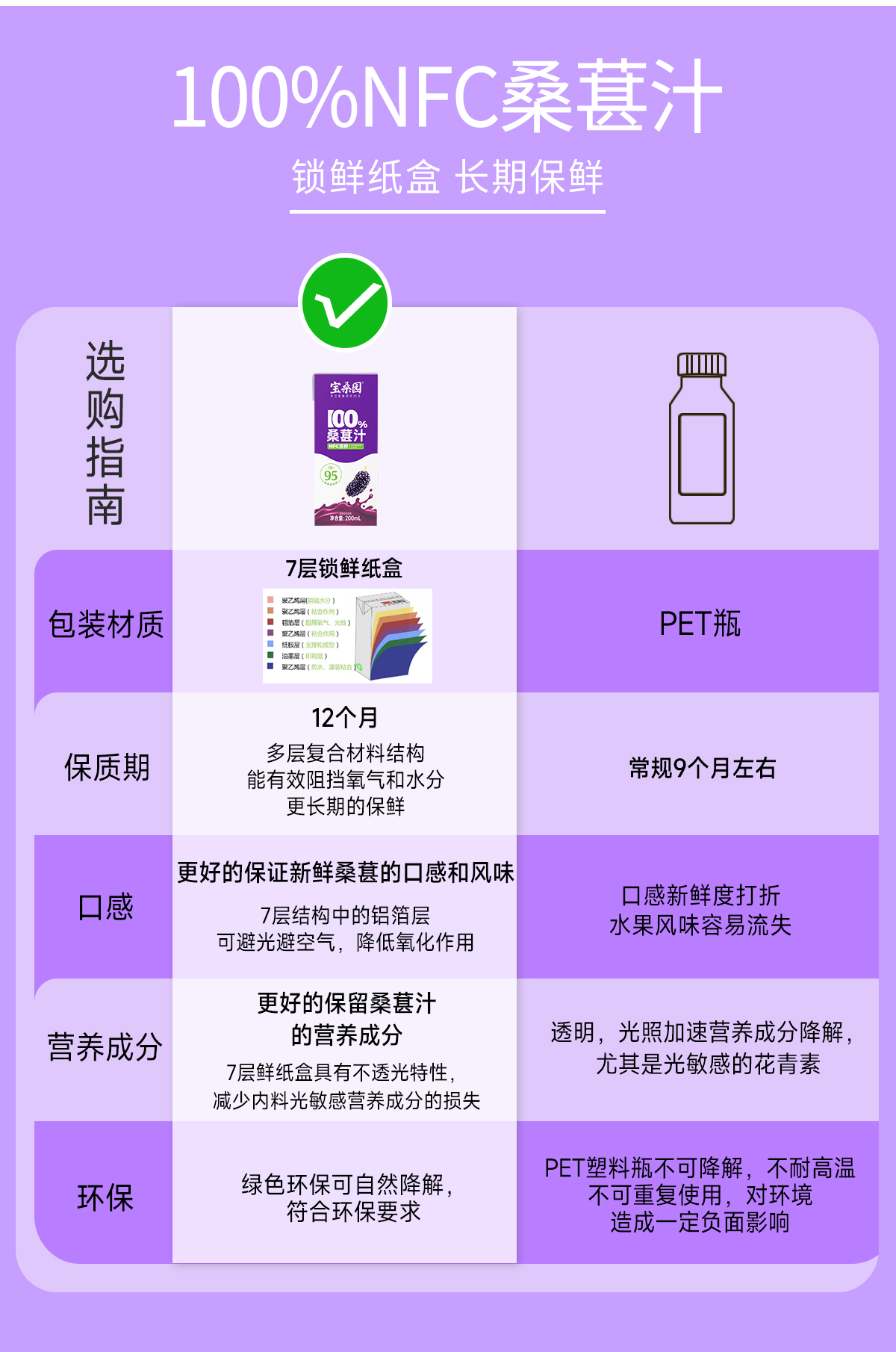 商品名称:宝桑园100%原榨桑果汁200ml*6盒