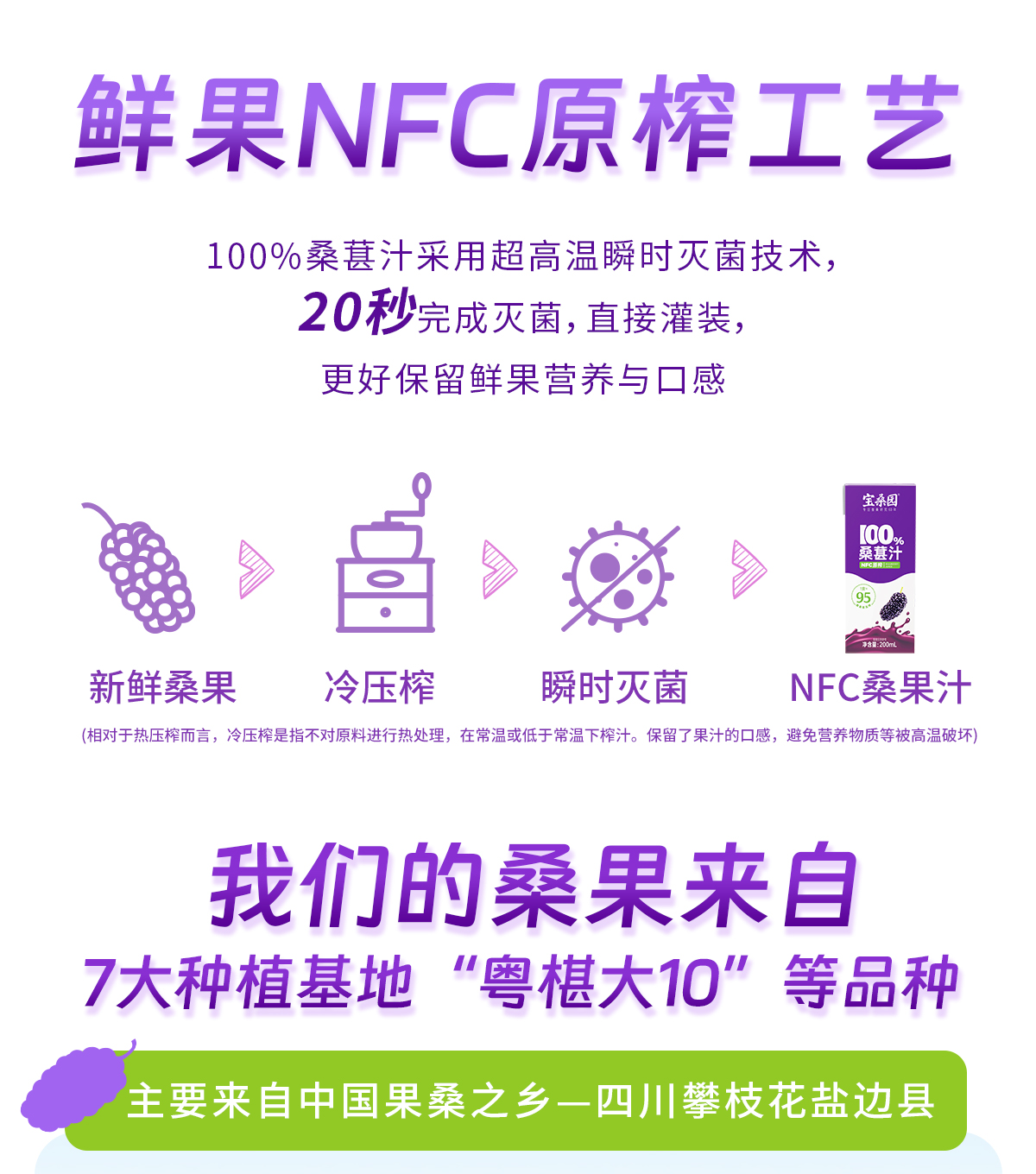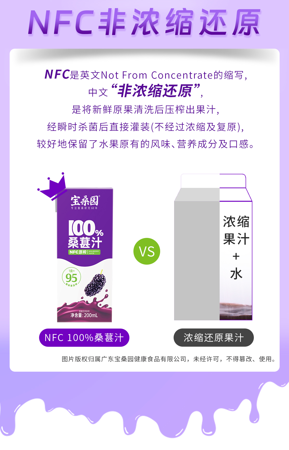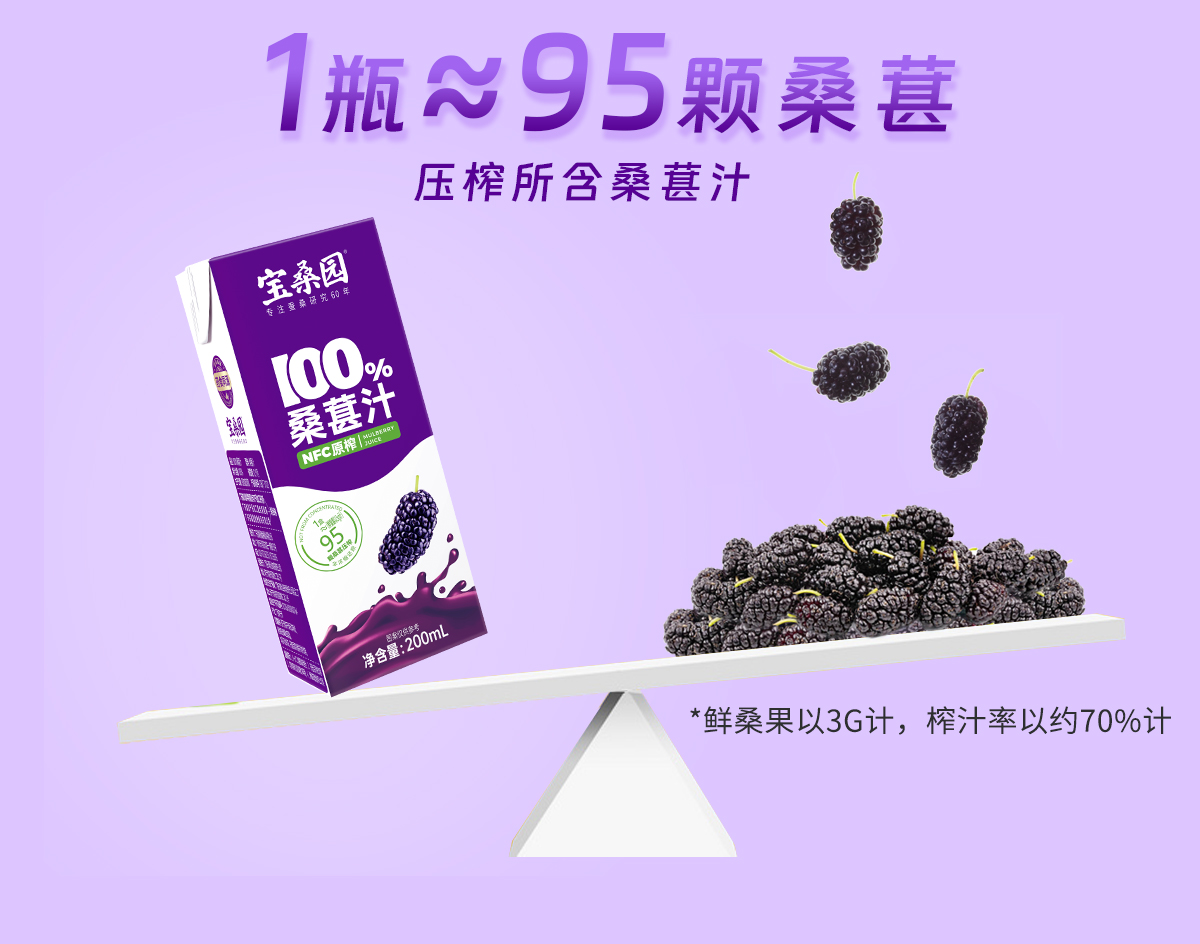 商品名称:宝桑园100%原榨桑果汁200ml*6盒