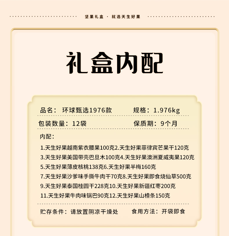 商品名称:天生好果环球甄选坚果零食礼盒1976g