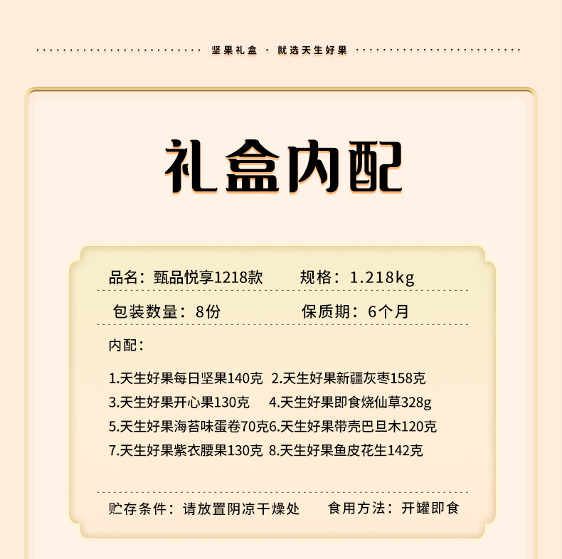 商品名称:天生好果甄品悦享坚果零食礼盒1218g