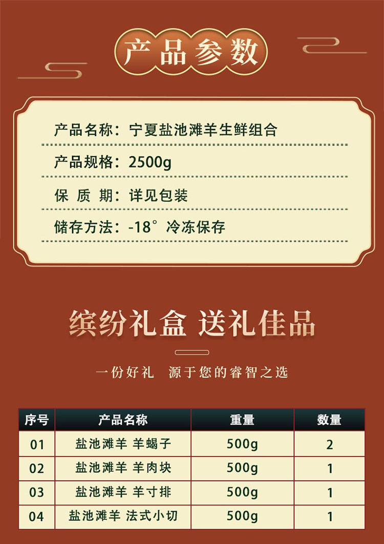 商品名称:【顺丰配送】宁鲜汇生鲜盛宴精选盐池滩羊肉礼盒2500g