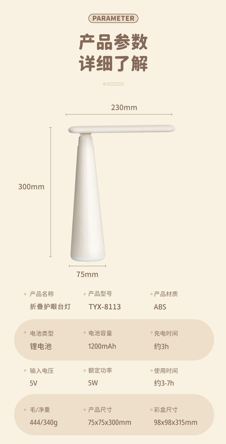 商品名称:AIYOUTH/艾青春折叠护眼台灯TYX-8113