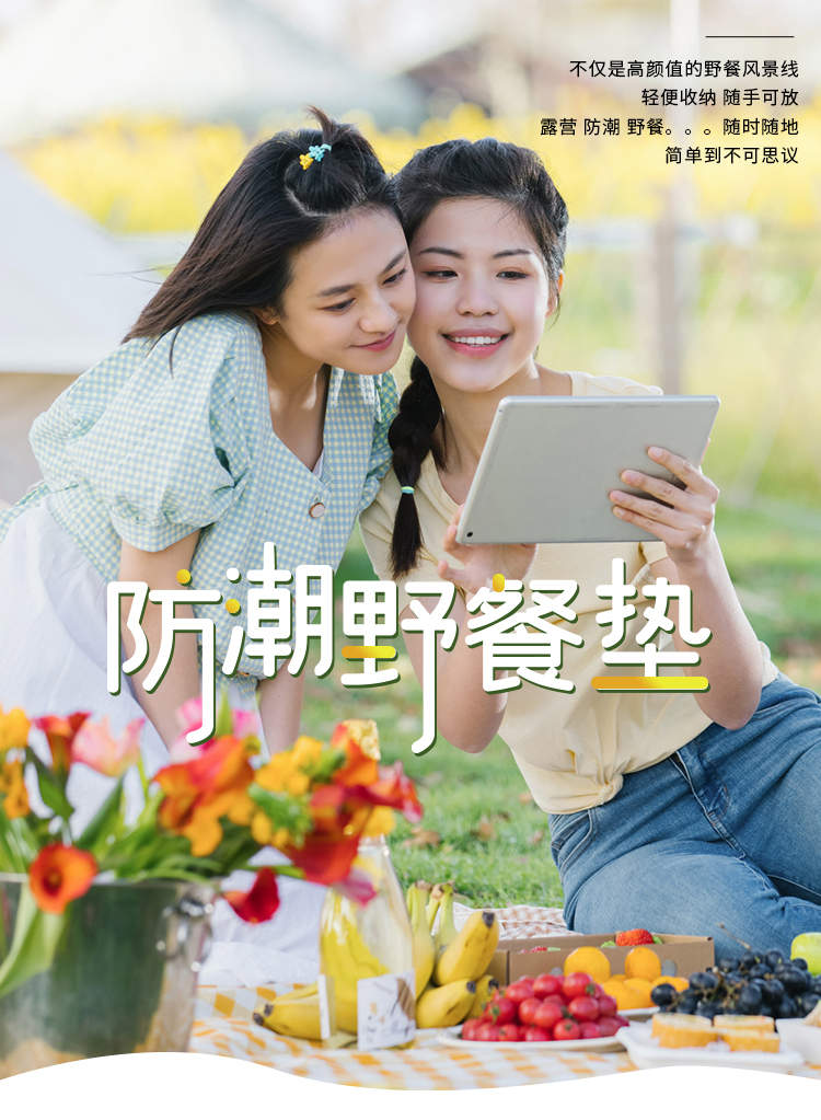 趣游帮黄白格中号防潮野餐垫Y13