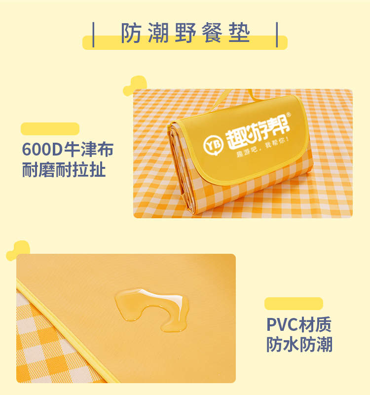 商品名称:趣游帮黄白格中号防潮野餐垫Y13