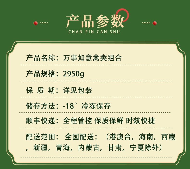 商品名称:【顺丰配送】淘鲜拾光万事如意家禽类礼盒2950g