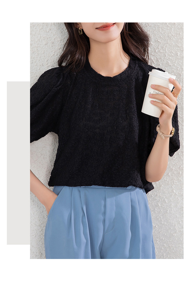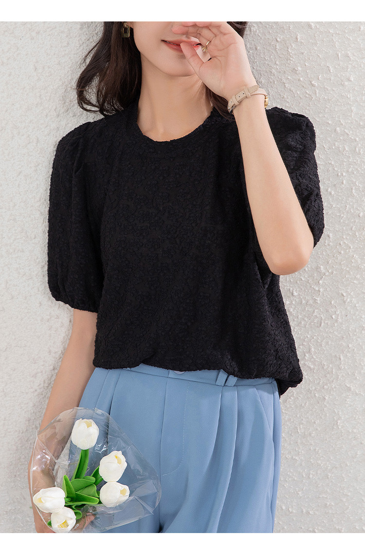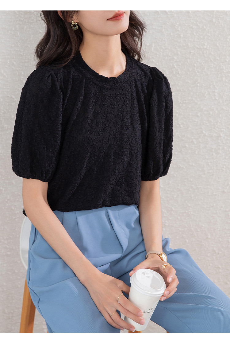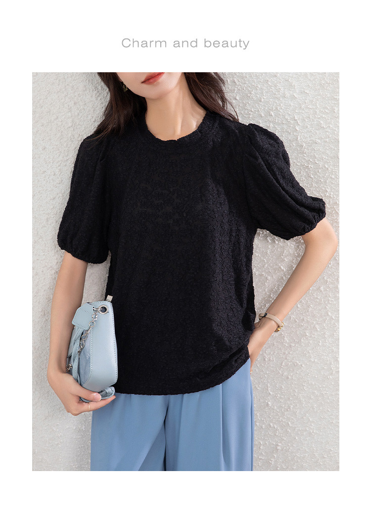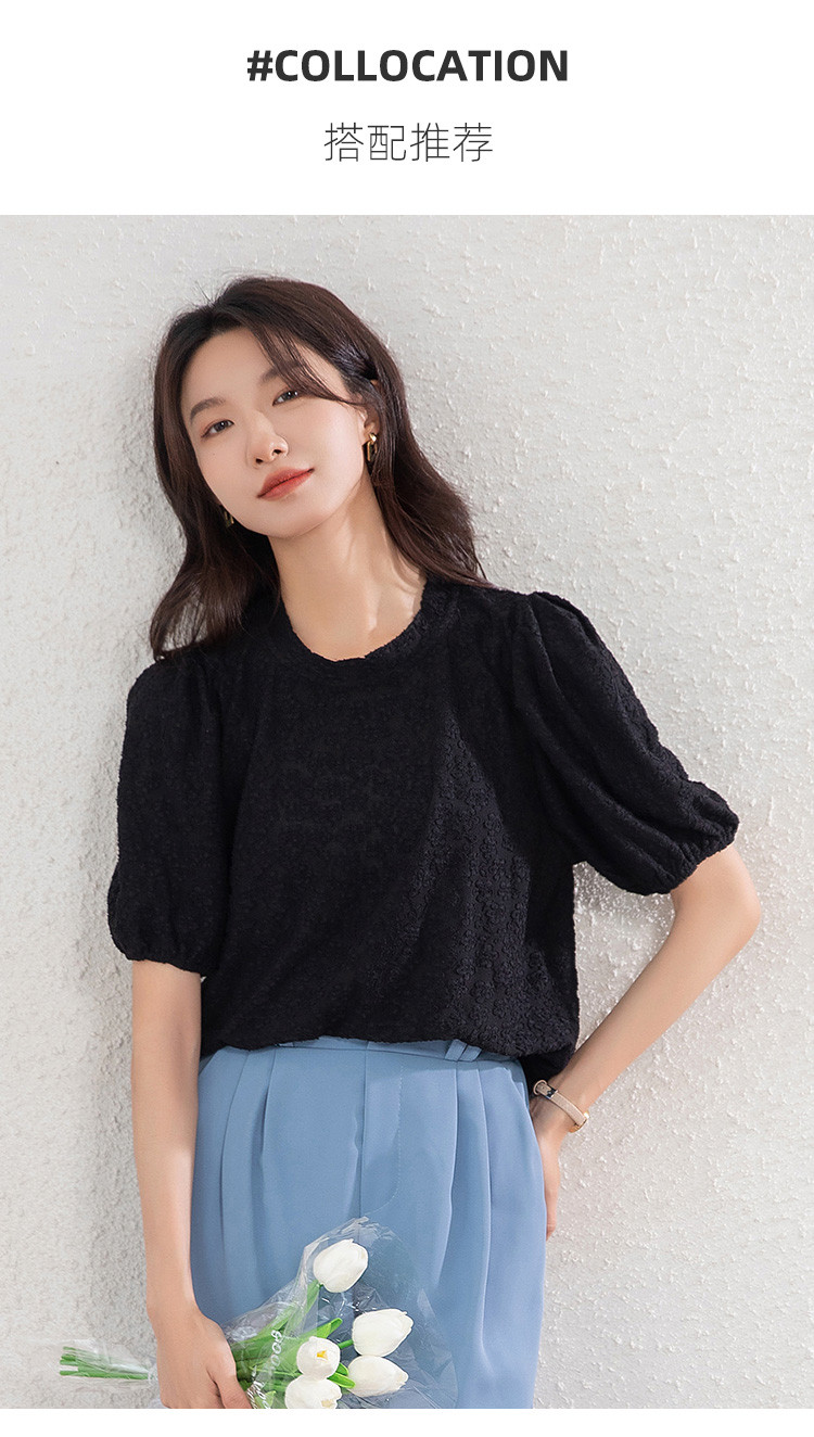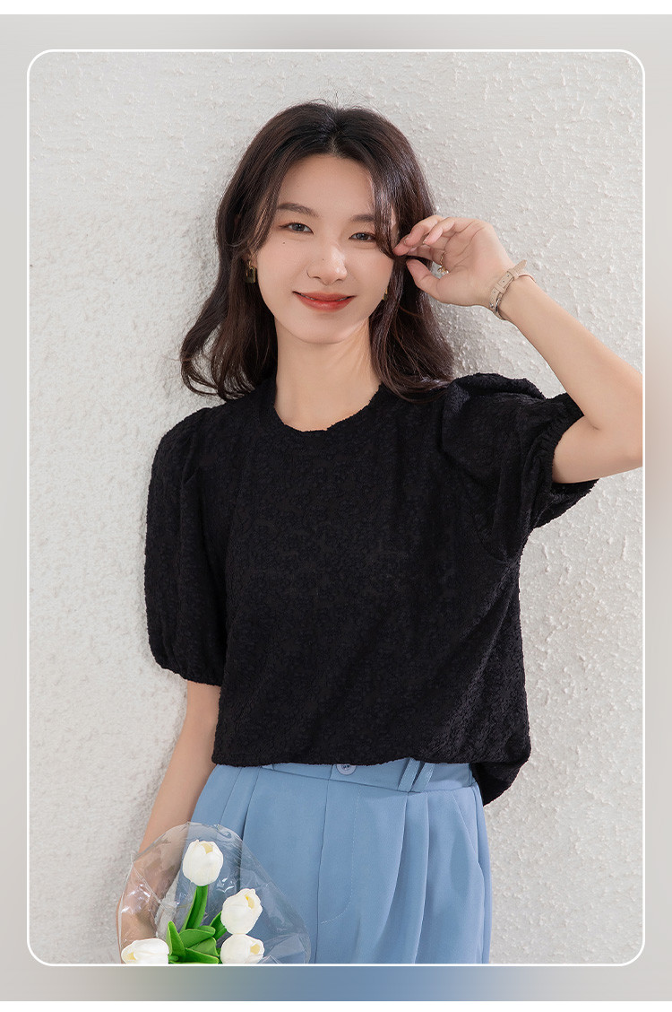 商品名称:t恤女短袖夏季别致小清时尚泡泡袖气质上衣 204696