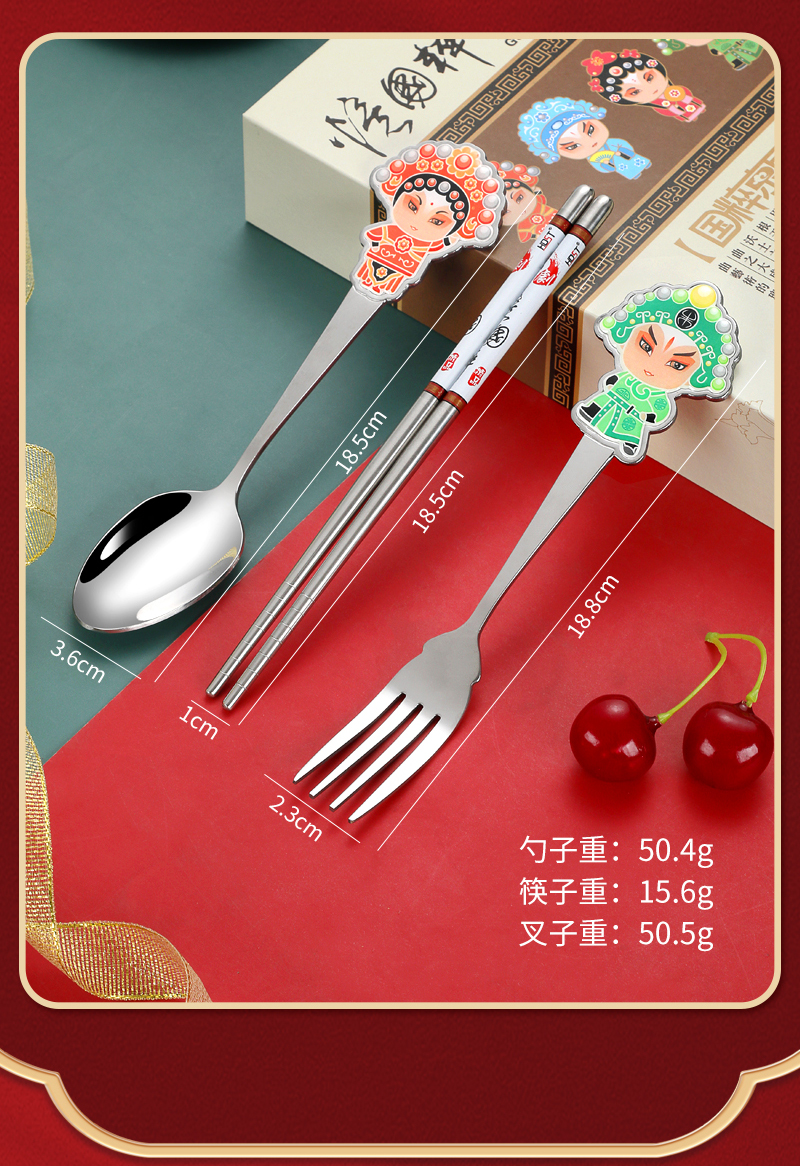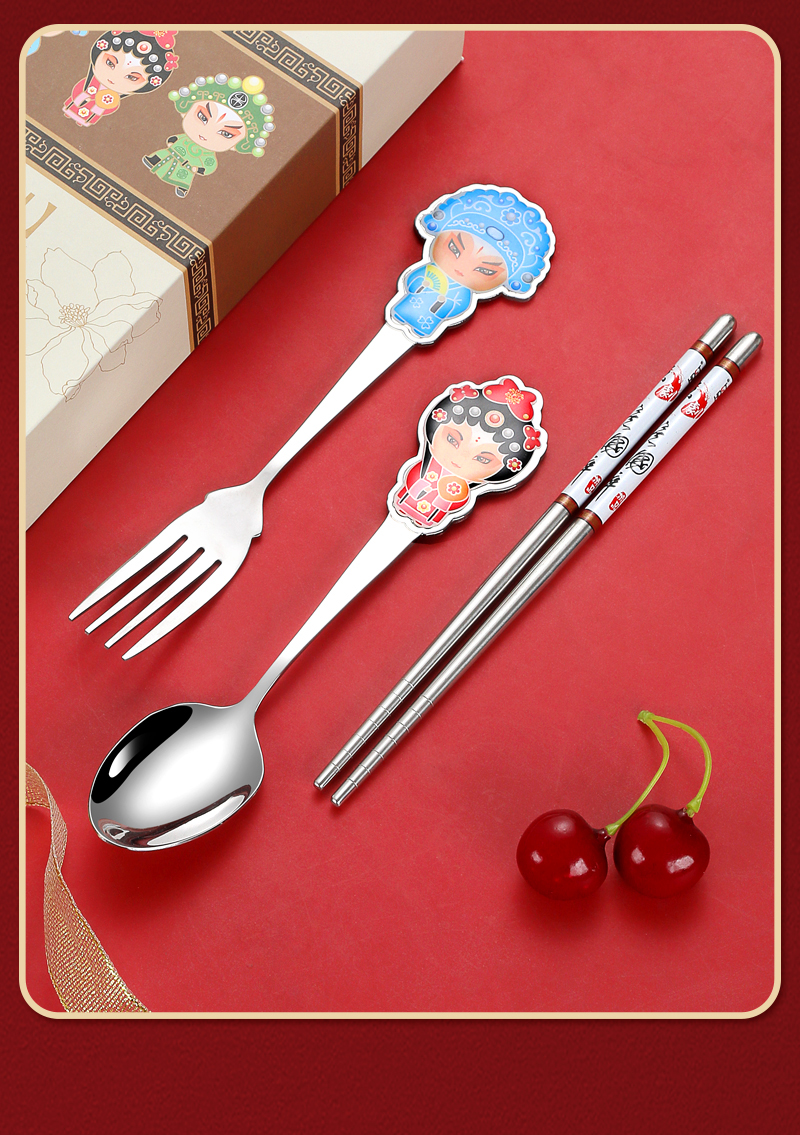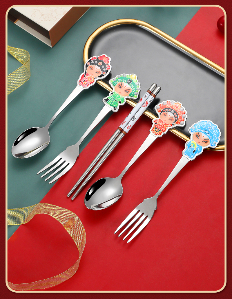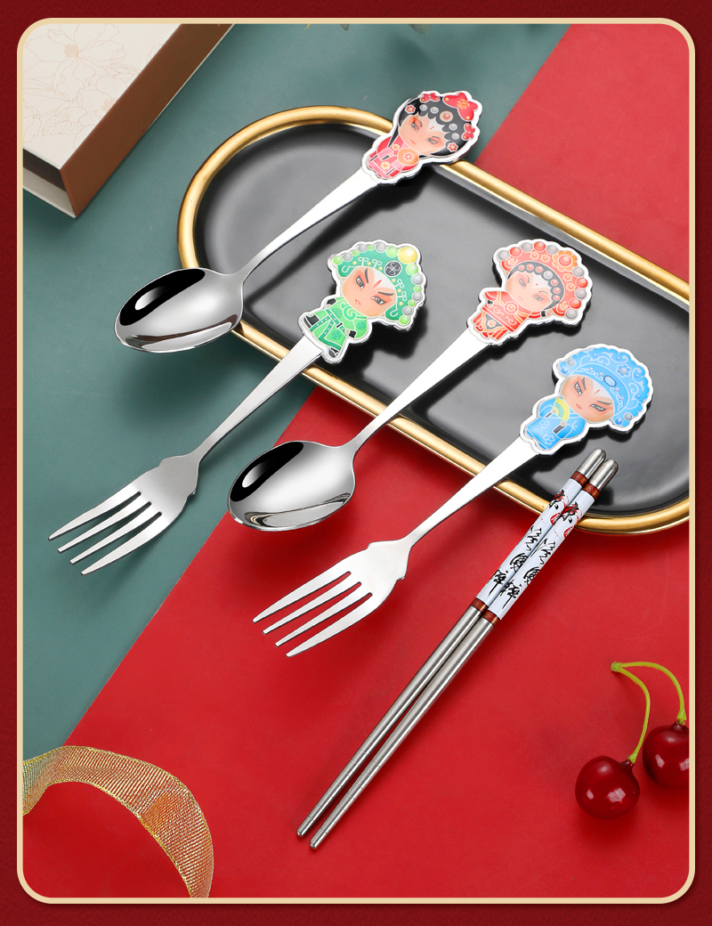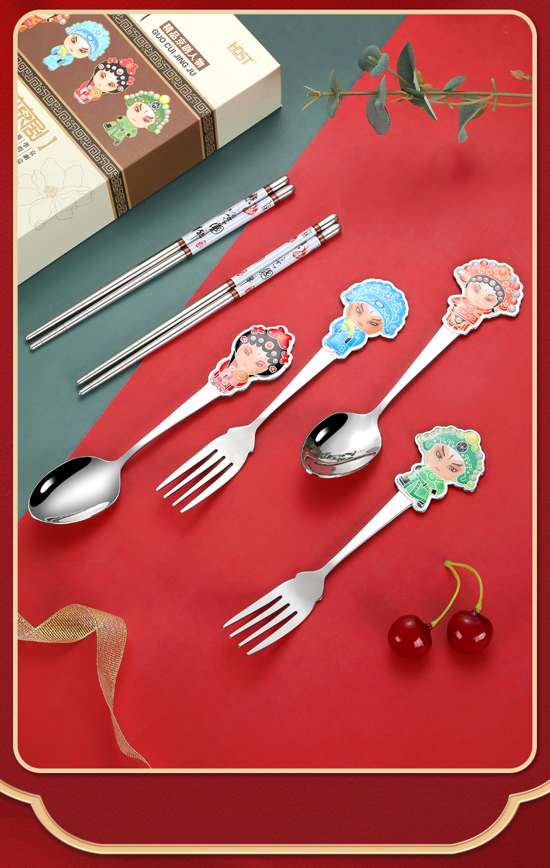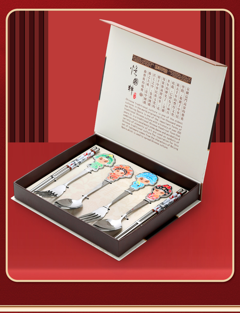 HDST/华典世通忆国粹京剧人物勺叉筷餐具六件组礼盒套装LP-1315