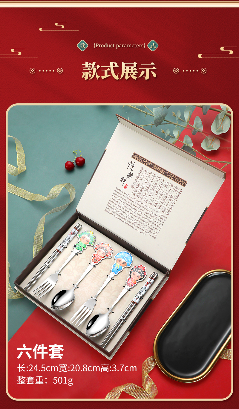商品名称:HDST/华典世通忆国粹京剧人物勺叉筷餐具六件组礼盒套装LP-1315