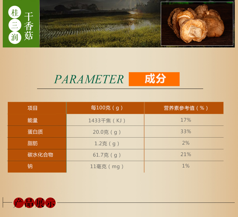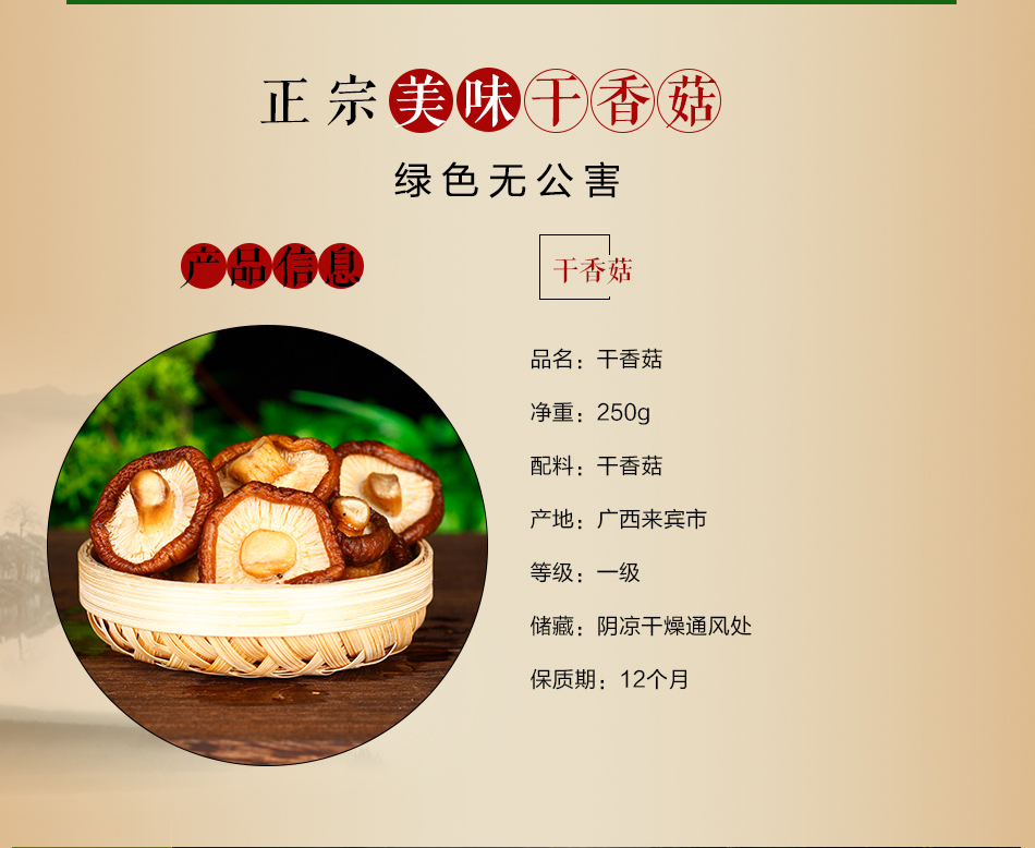 商品名称:桂三润干香菇250g