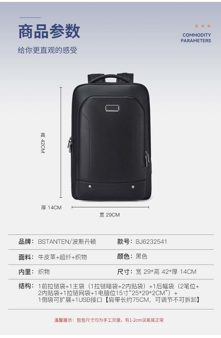 商品名称:BOSTANTEN/波斯丹顿双肩包-黑色BJ6232541
