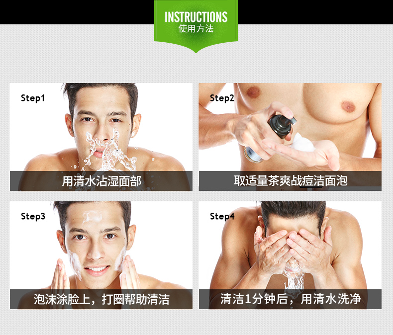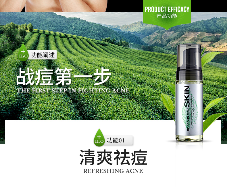 商品名称:BOSSDUN.MEN/波斯顿茶爽战痘洁面泡150ml