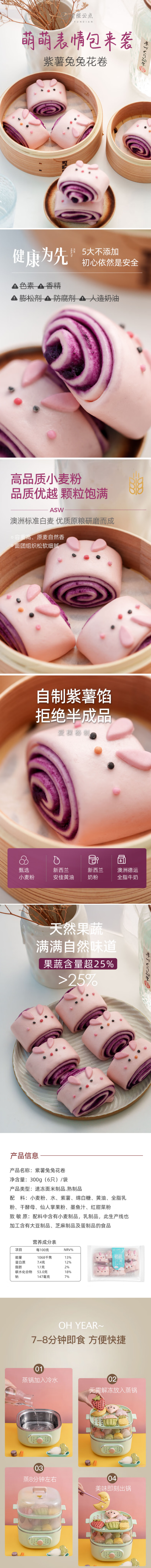 商品名称:爱稞云点紫薯兔兔花卷300g