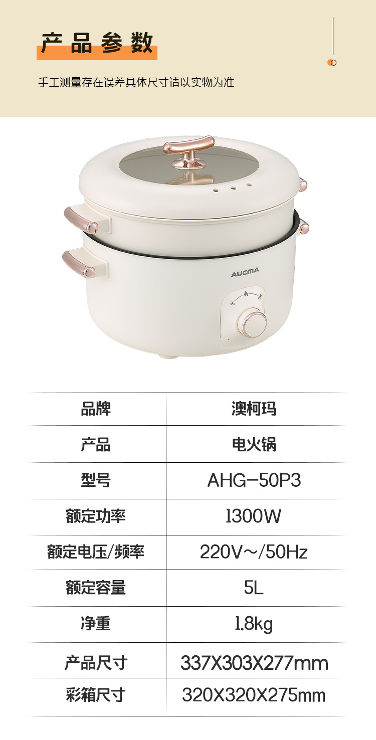 商品名称:AUCMA/澳柯玛5升电火锅AHG-50P3