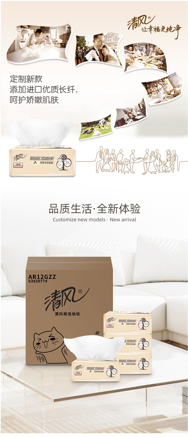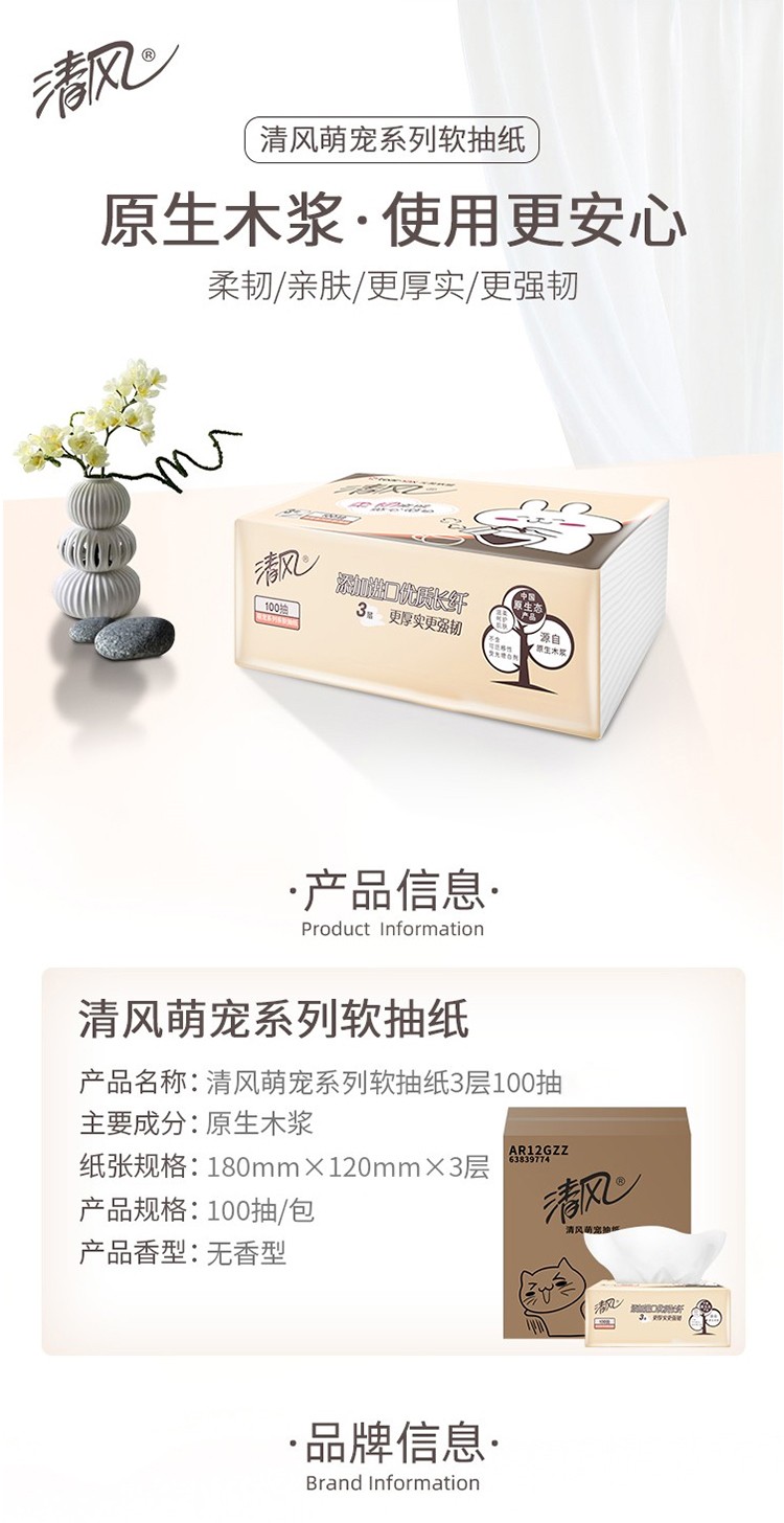 商品名称:Breeze/清风萌宠系列无香型三层亲肤软抽纸100抽