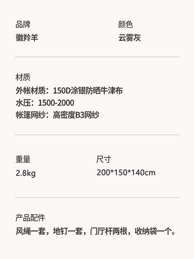 商品名称:徽羚羊全自动速开帐篷200*150*140cm HLY-ZP-22039