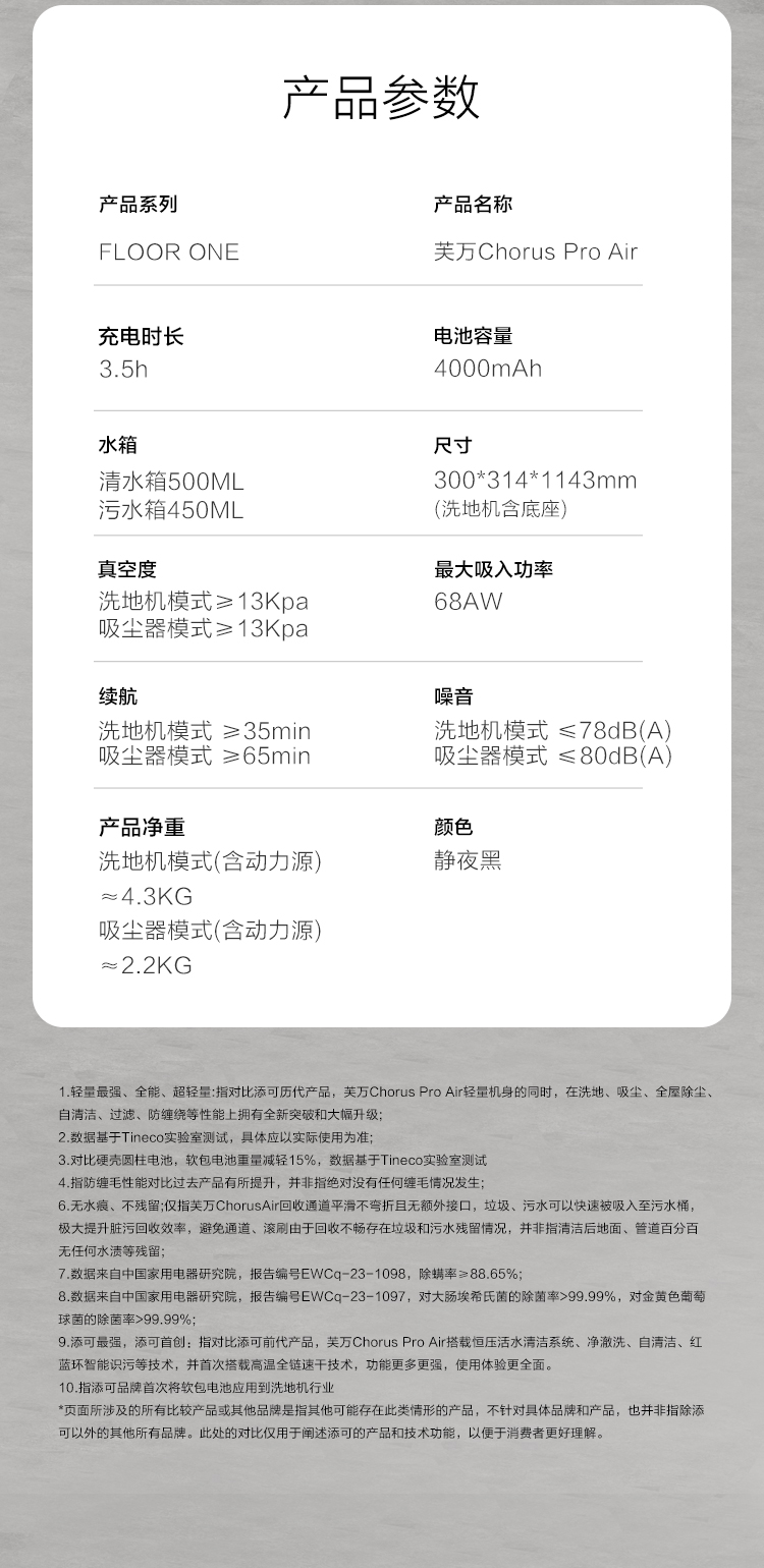商品名称:TINECO/添可芙万Chorus Pro Air无线智能洗地机-静夜黑