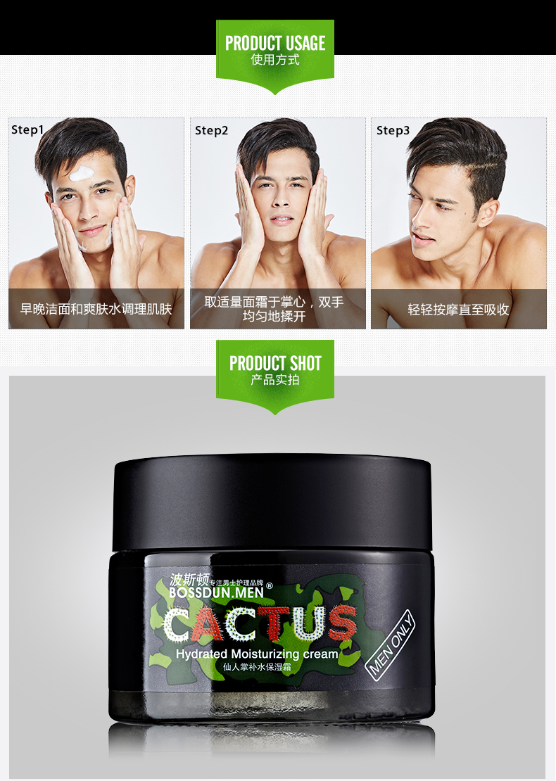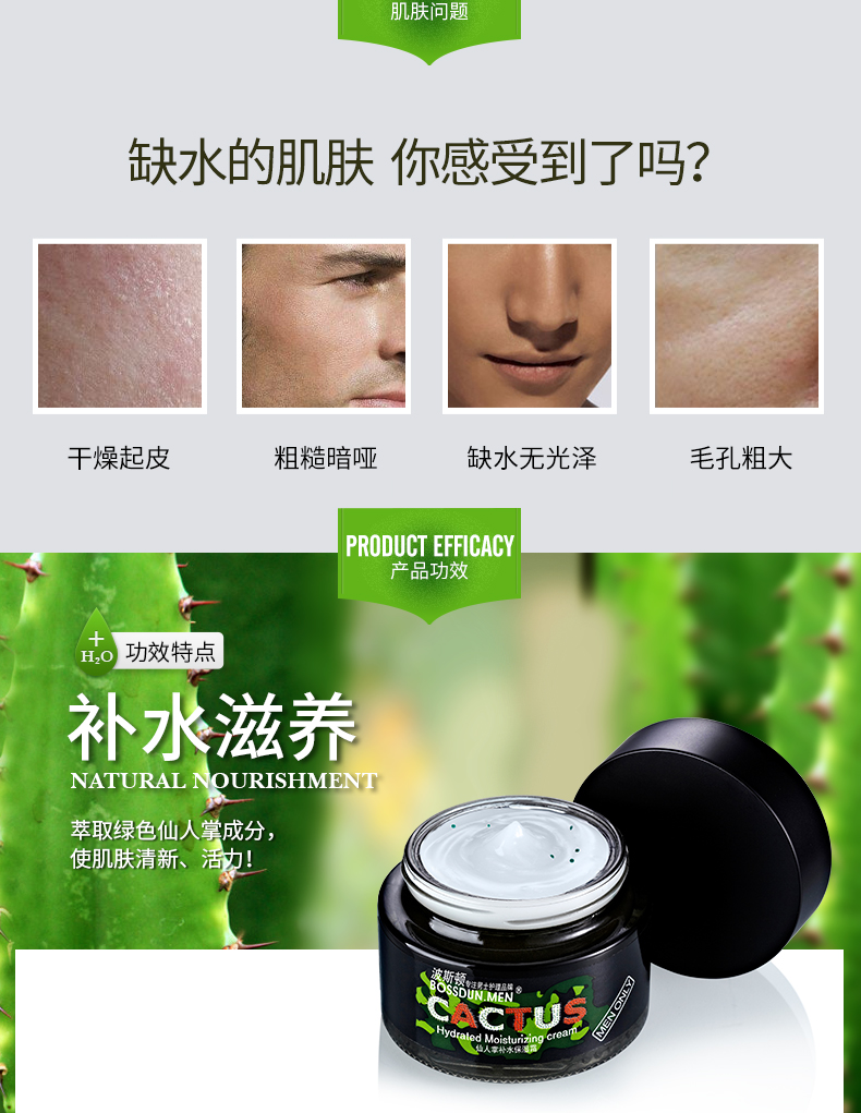 商品名称:BOSSDUN.MEN/波斯顿仙人掌补水保湿霜50g