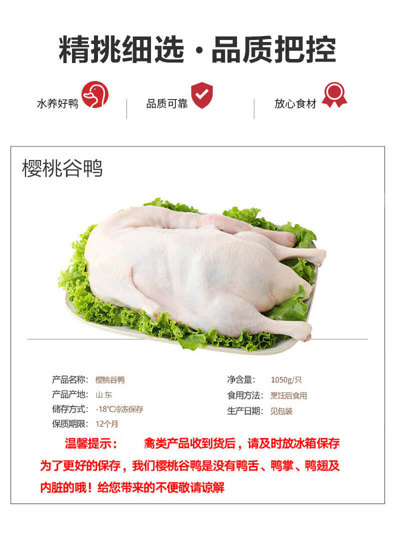 商品名称:【顺丰配送】淘鲜拾光水养樱桃谷鸭1050g*2只