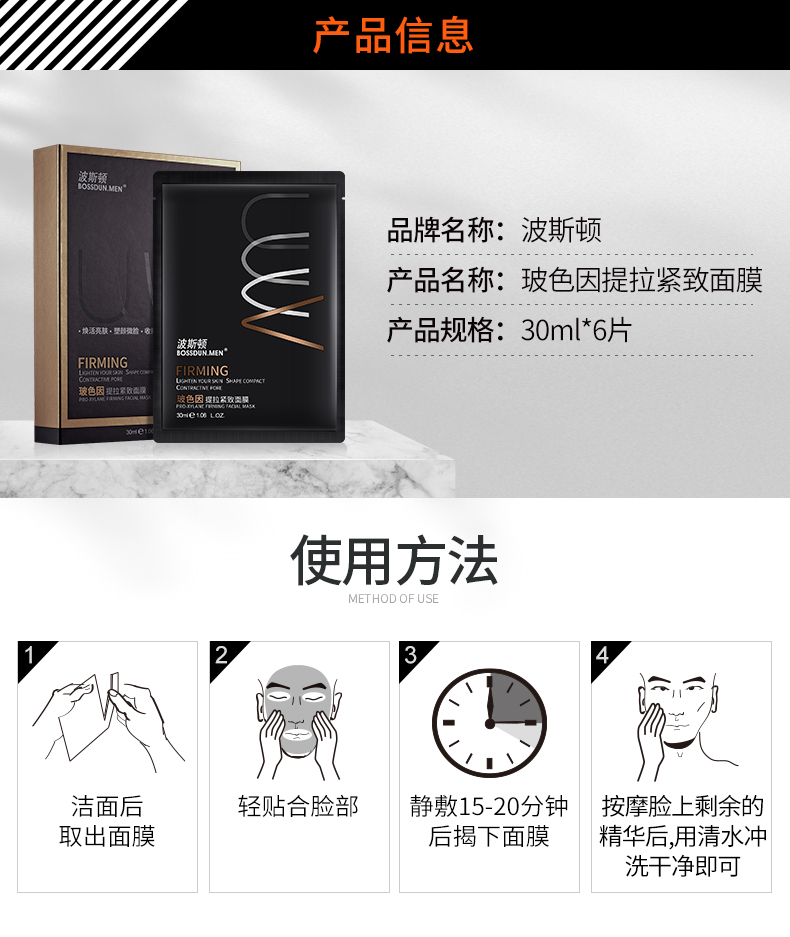 商品名称:BOSSDUN.MEN/波斯顿玻色因提拉紧致面膜30ml*6片