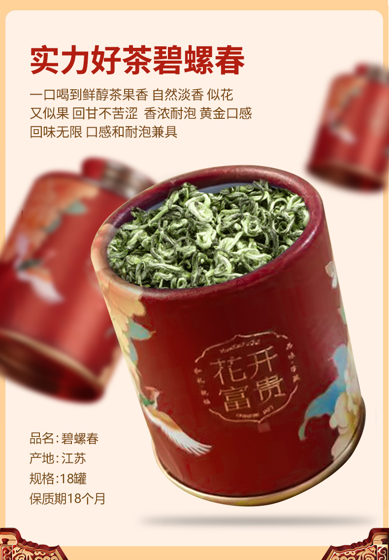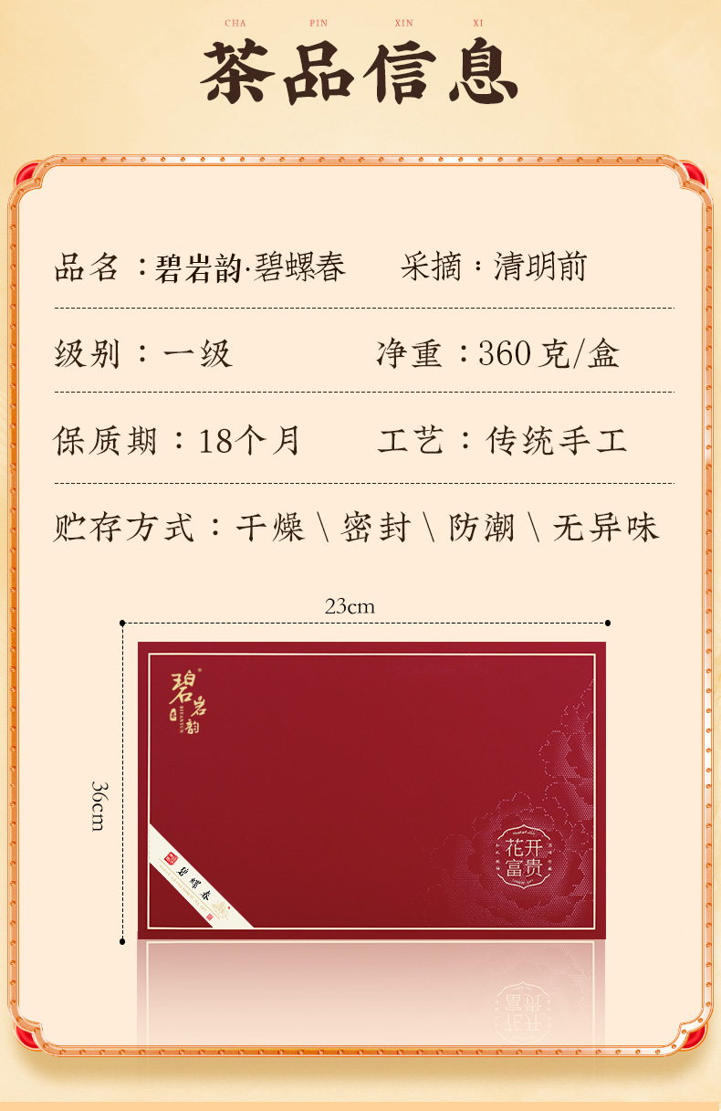 商品名称:碧岩韵花开富贵碧螺春绿茶礼盒360g BYYC-HKFG18G-BLC-360