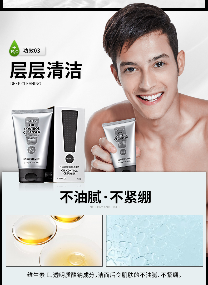 商品名称:BOSSDUN.MEN/波斯顿火山泥控油去黑头洁面乳120g