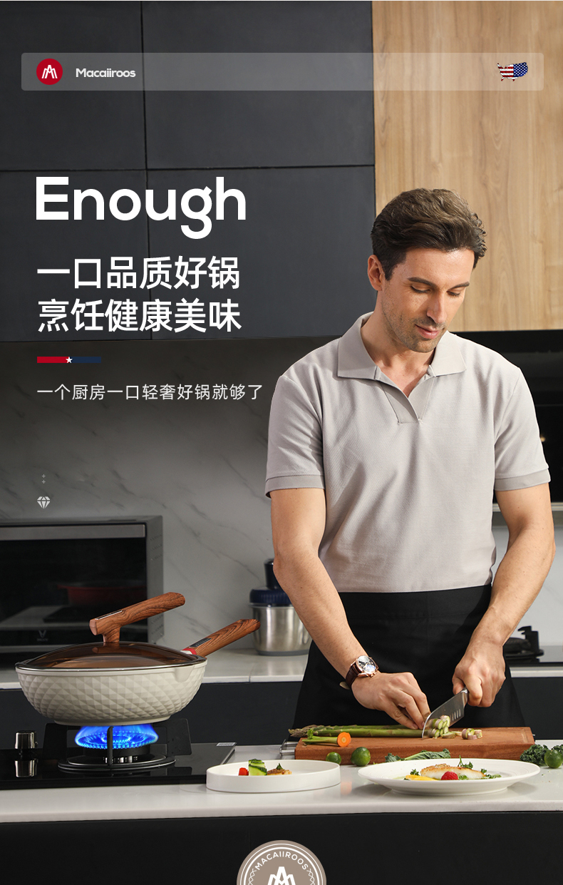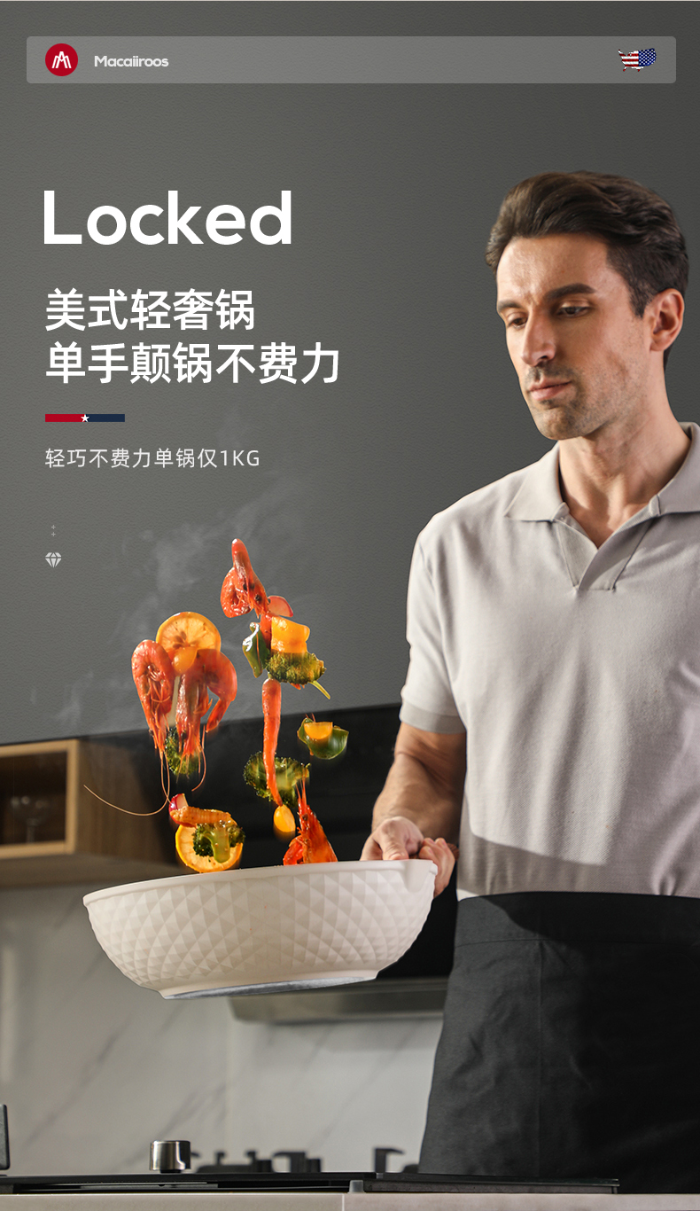 MACAIIROOS/迈卡罗30cm麦饭石轻奢炒锅MC-C30L1