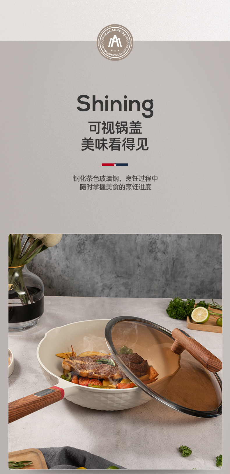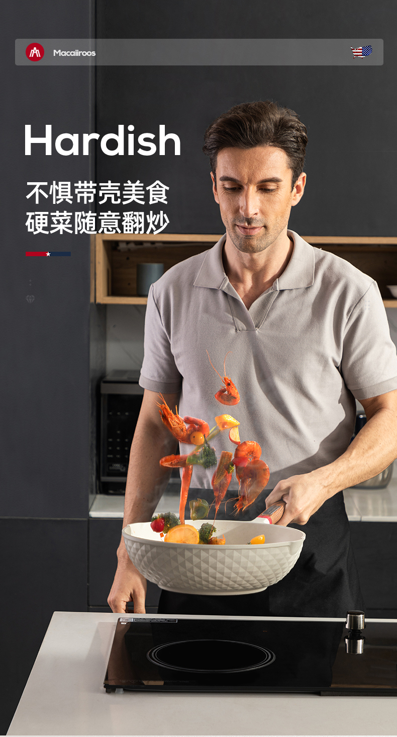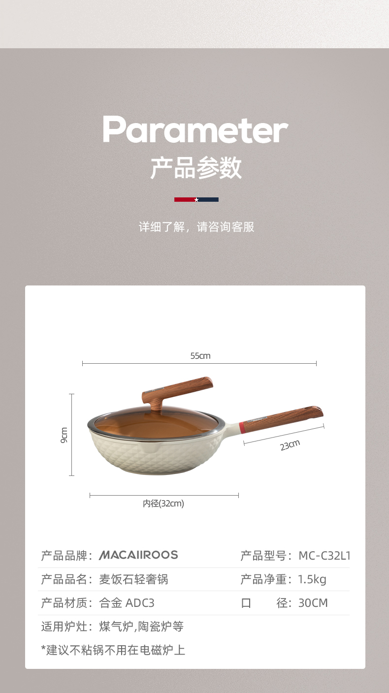 商品名称:MACAIIROOS/迈卡罗30cm麦饭石轻奢炒锅MC-C30L1