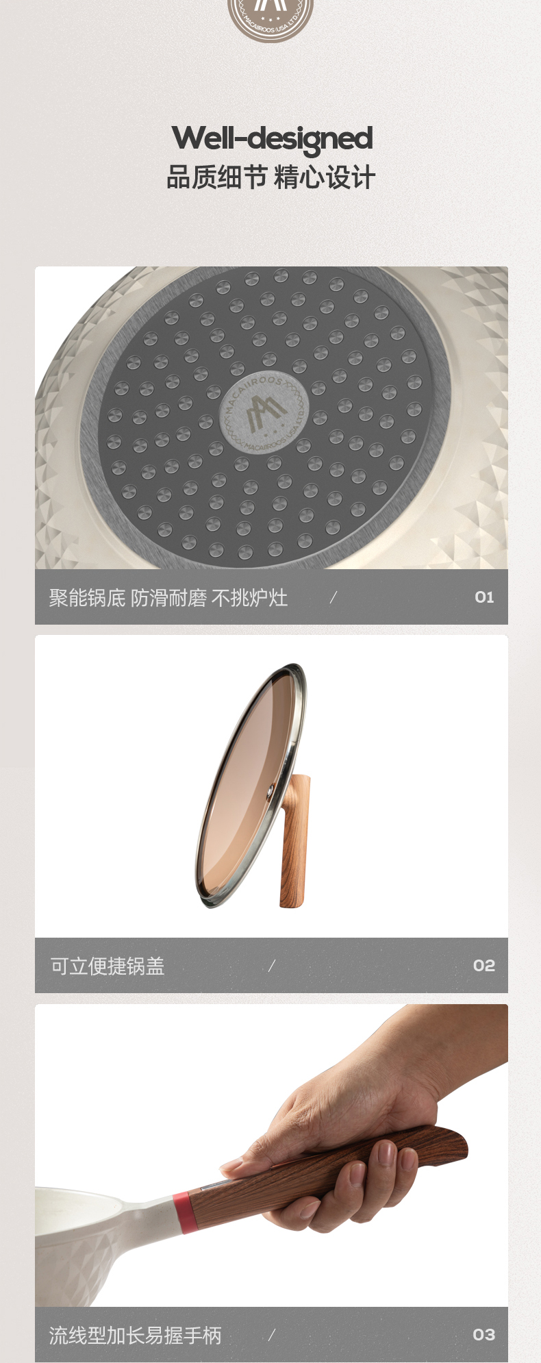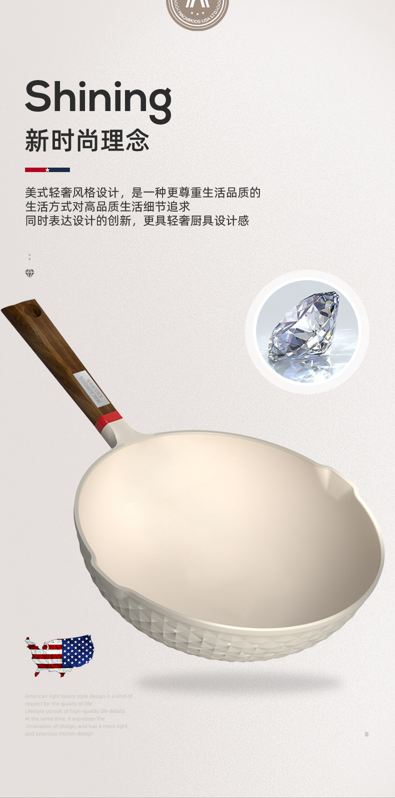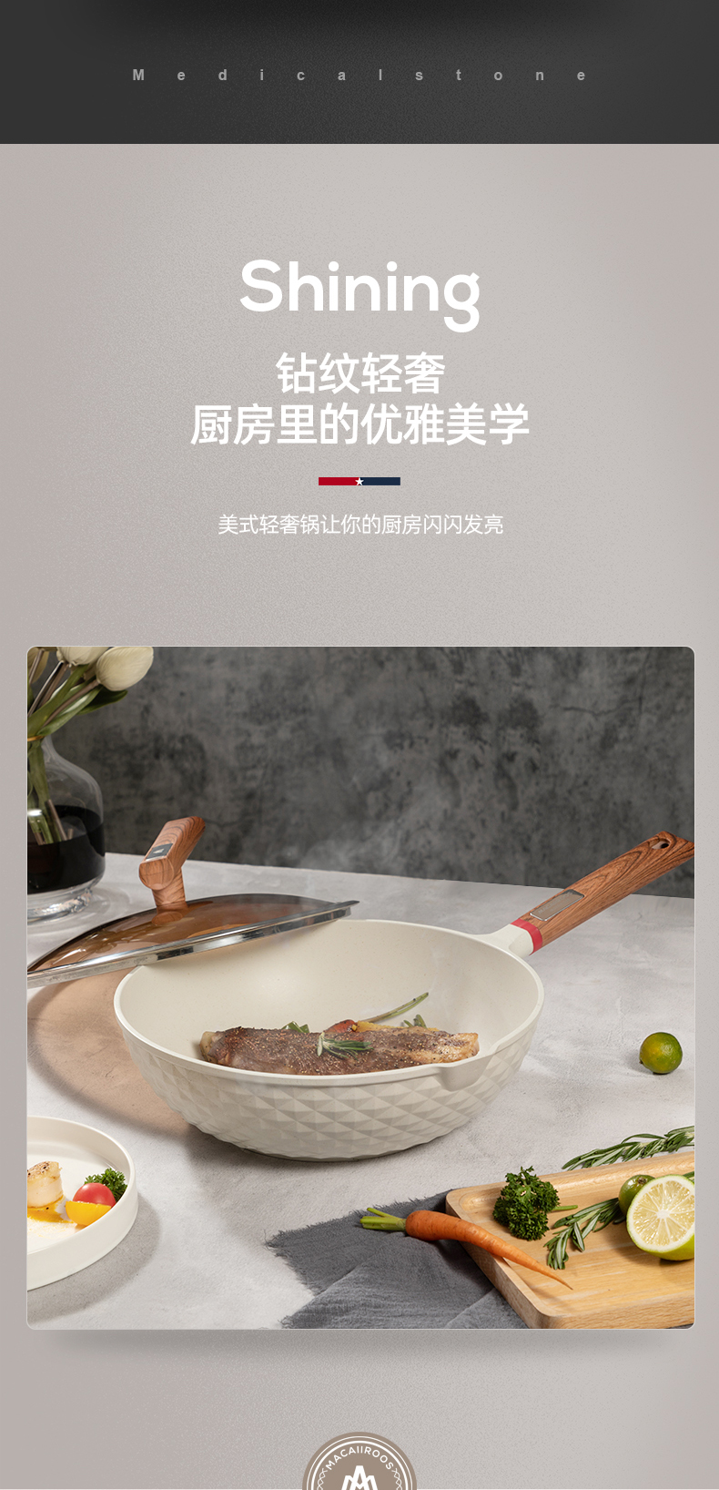 商品名称:MACAIIROOS/迈卡罗30cm麦饭石轻奢炒锅MC-C30L1