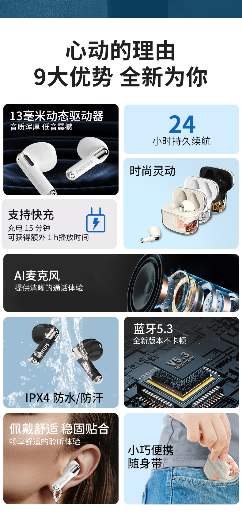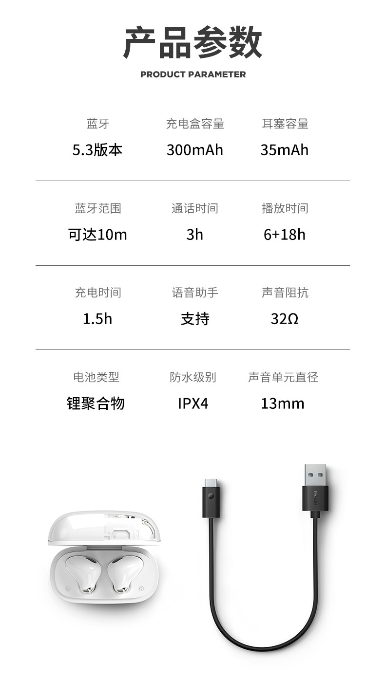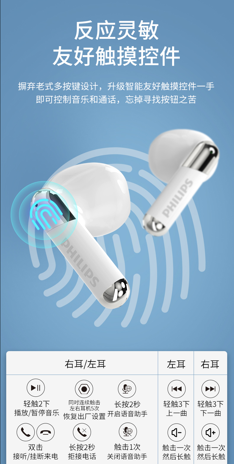 商品名称:PHILIPS/飞利浦TWS真无线蓝牙耳机TAT1168