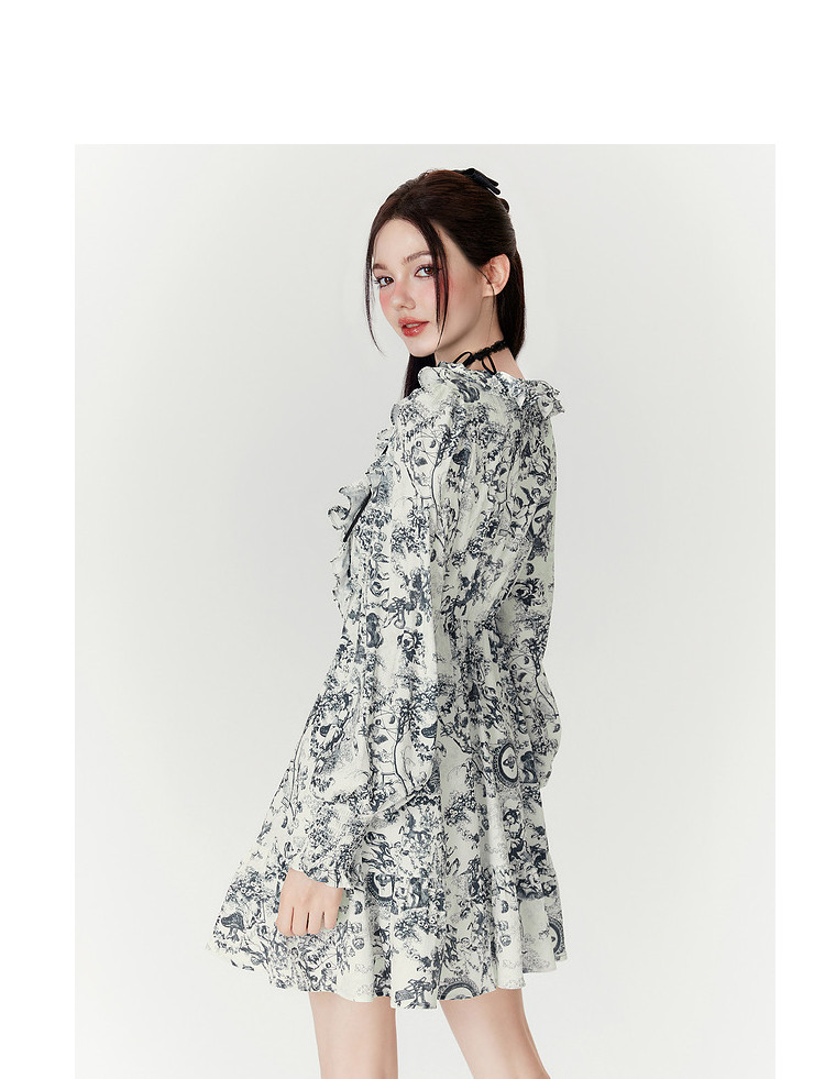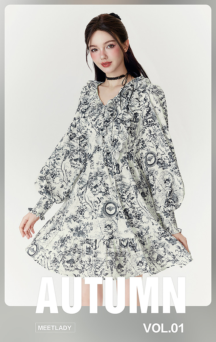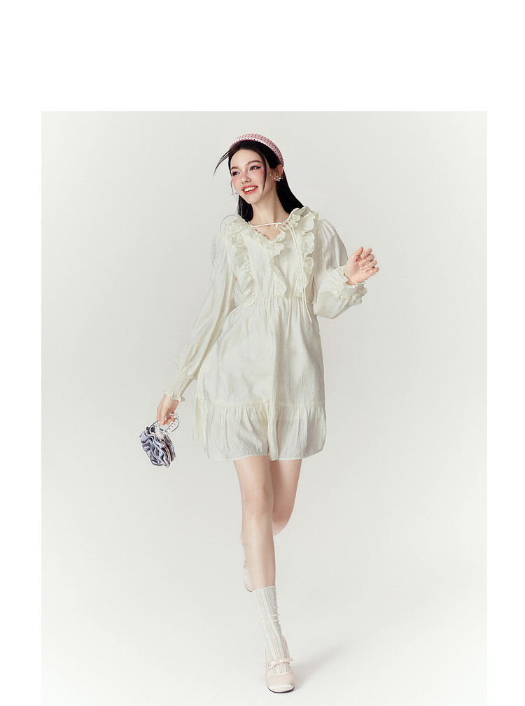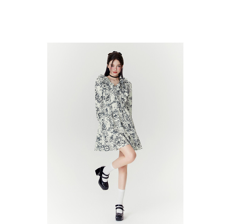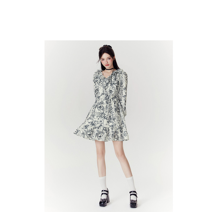 商品名称:【早秋爆款】千金风甜美复古长袖连衣裙女小众设计感裙子 249044