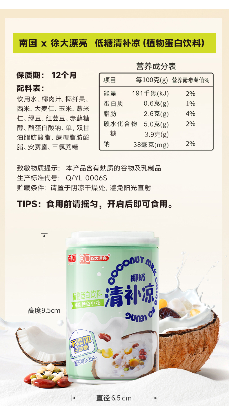 商品名称:南国徐大漂亮椰奶清补凉植物蛋白饮料255g*8罐