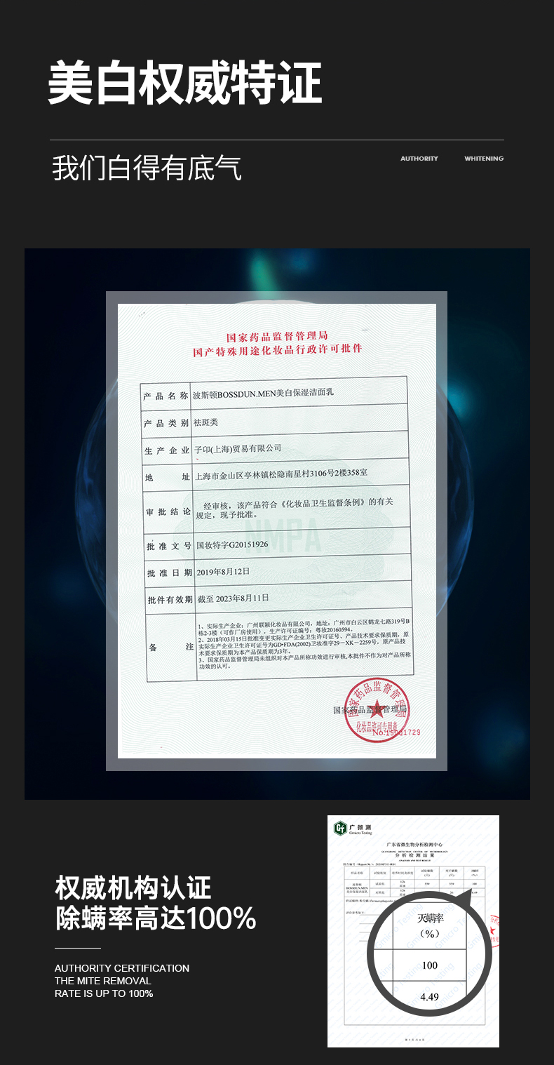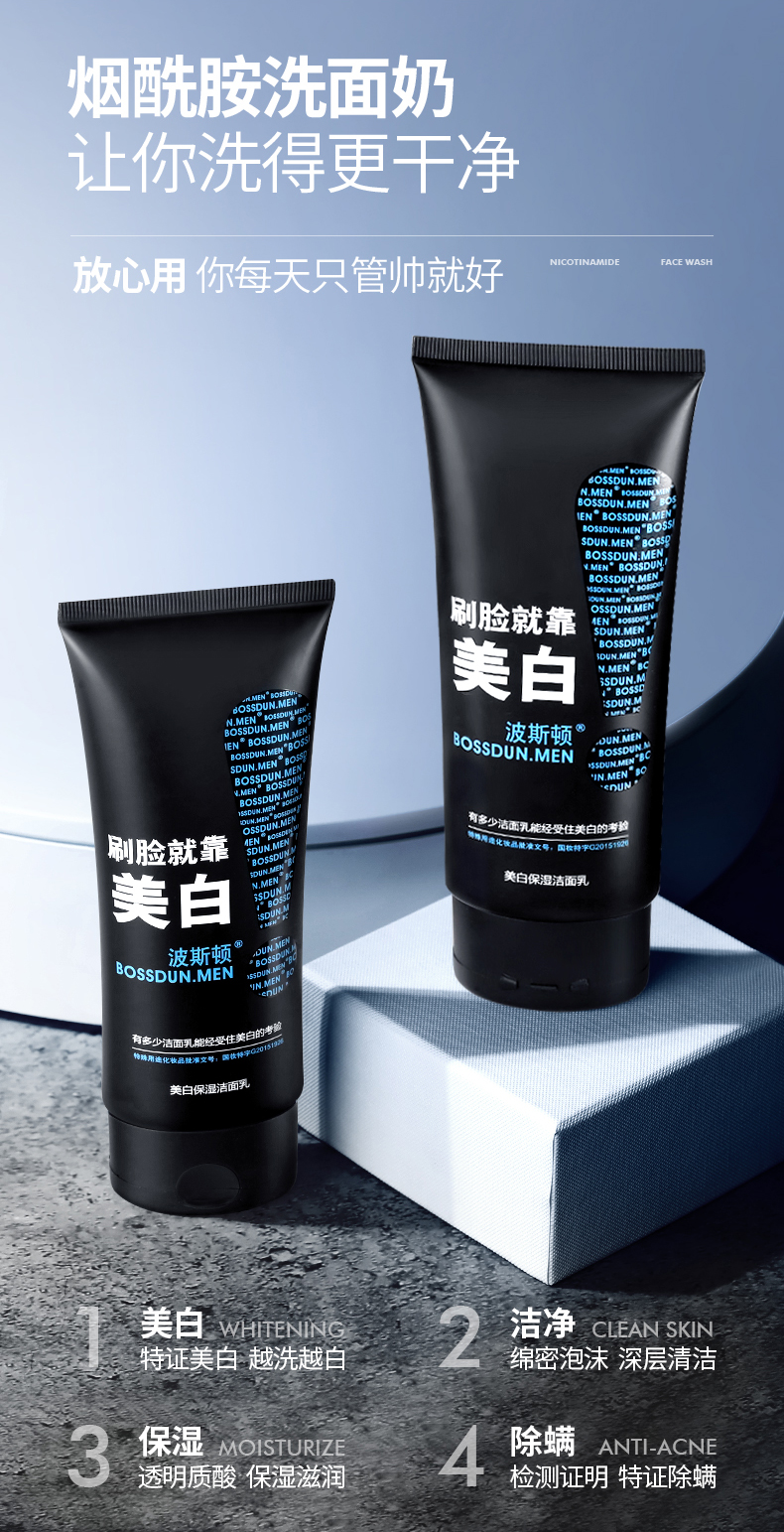 商品名称:BOSSDUN.MEN/波斯顿美白保湿洁面乳150g