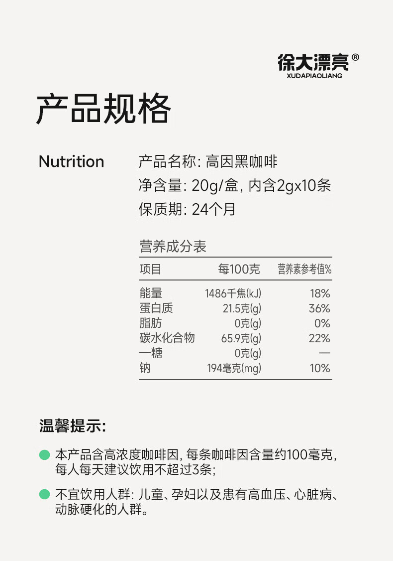 商品名称:南国徐大漂亮高因黑咖啡固体饮料20g*2盒