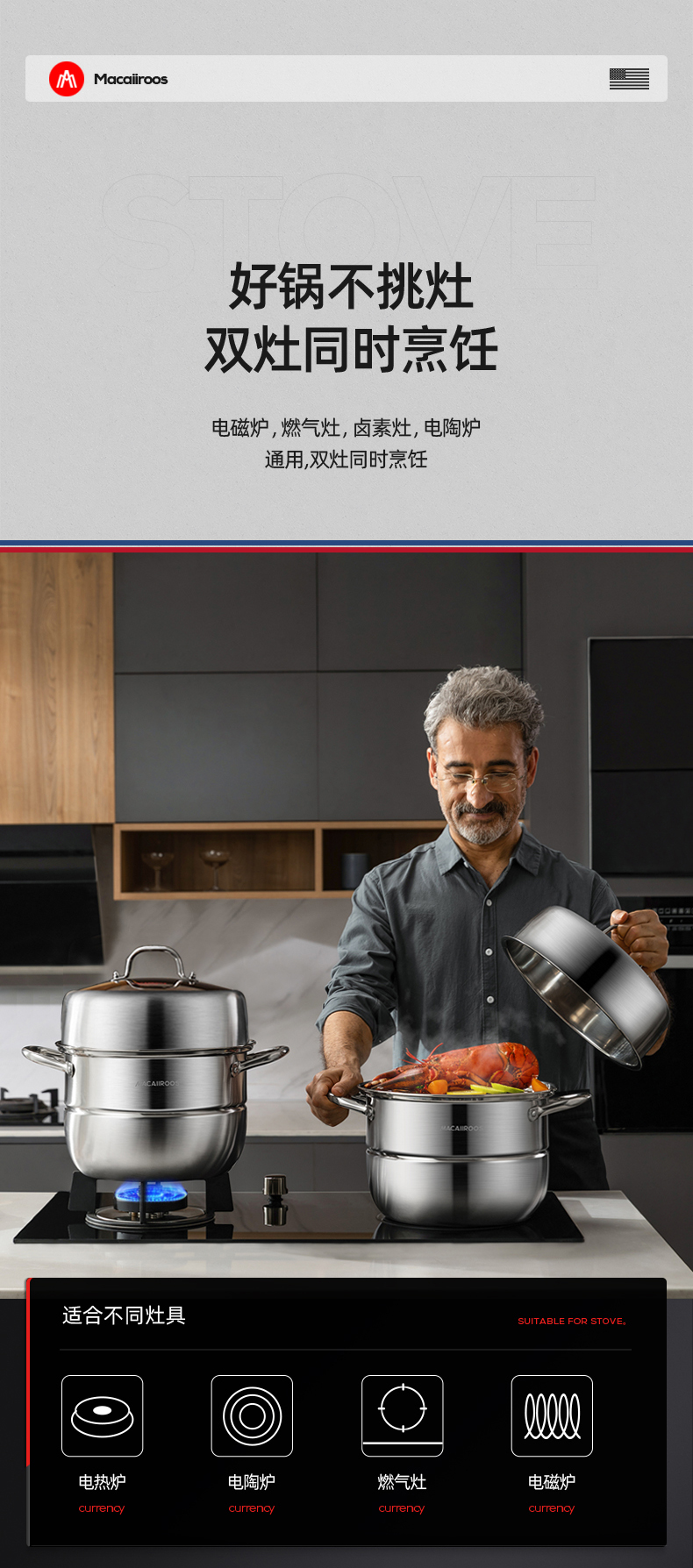MACAIIROOS/迈卡罗30cm双层不锈钢蒸锅MC-Z3020
