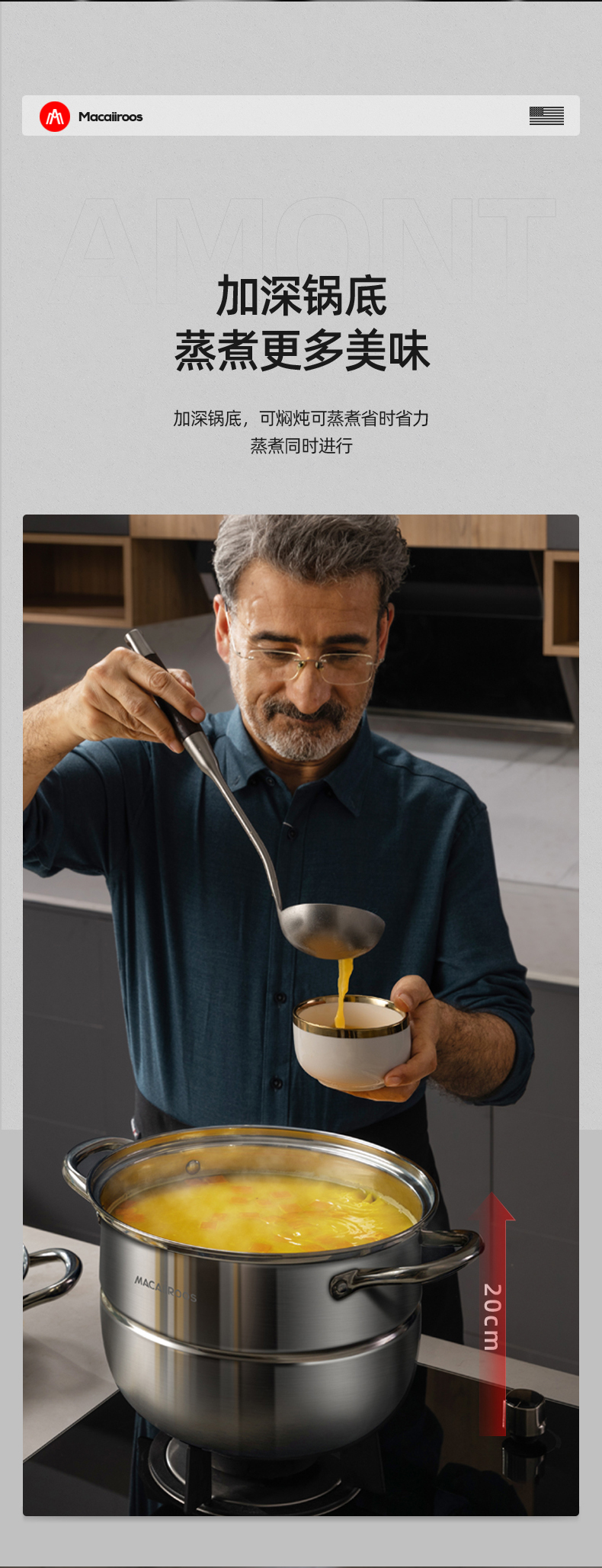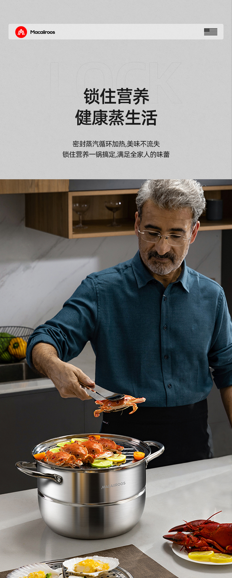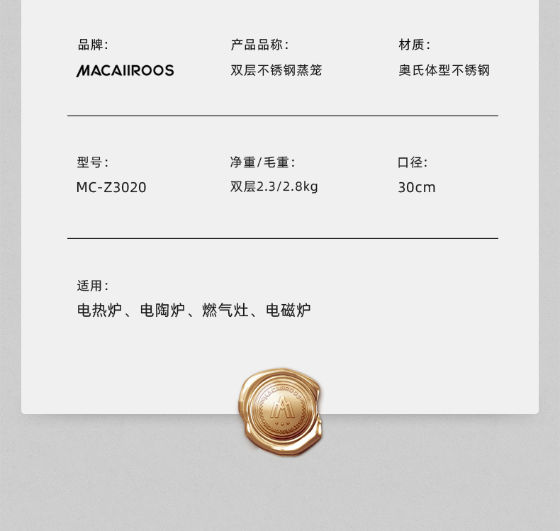 商品名称:MACAIIROOS/迈卡罗30cm双层不锈钢蒸锅MC-Z3020