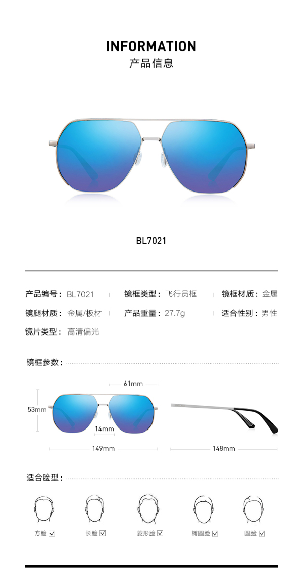 商品名称:BOLON暴龙偏光墨镜蛤蟆镜飞行员太阳镜男潮流开车眼镜BL7021