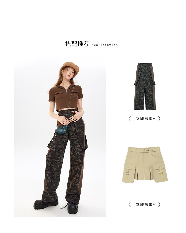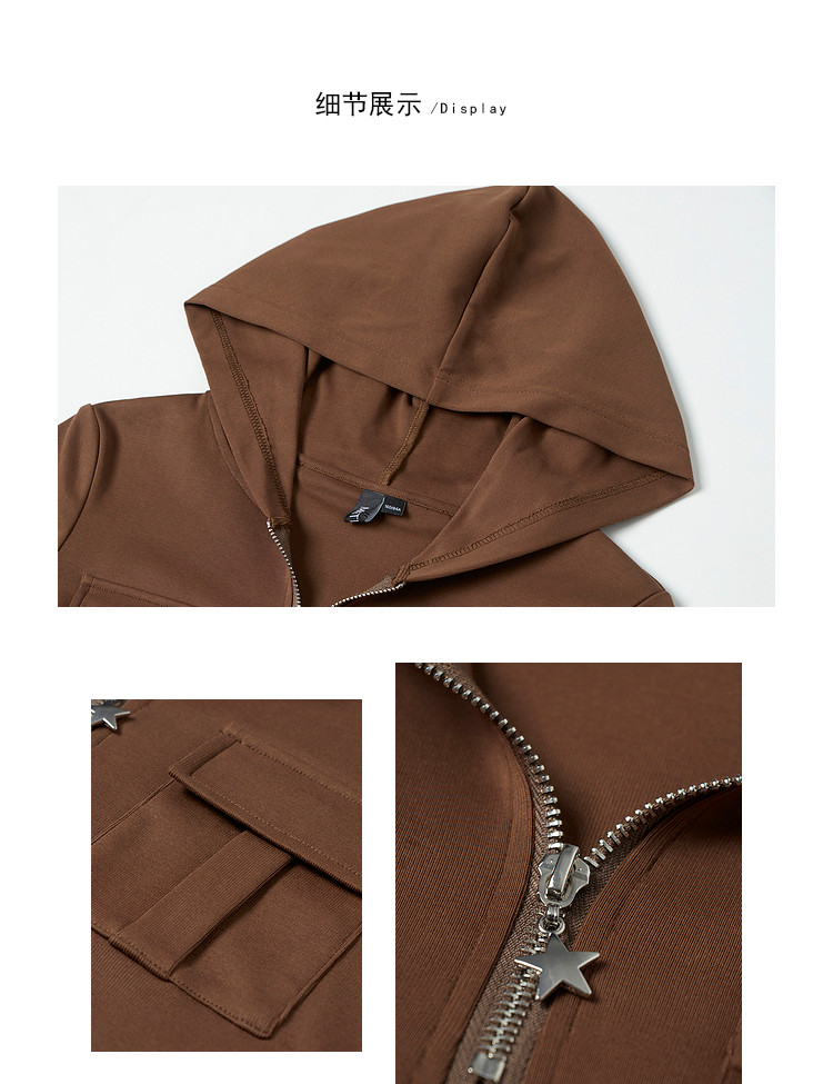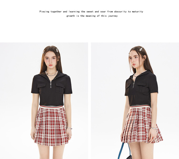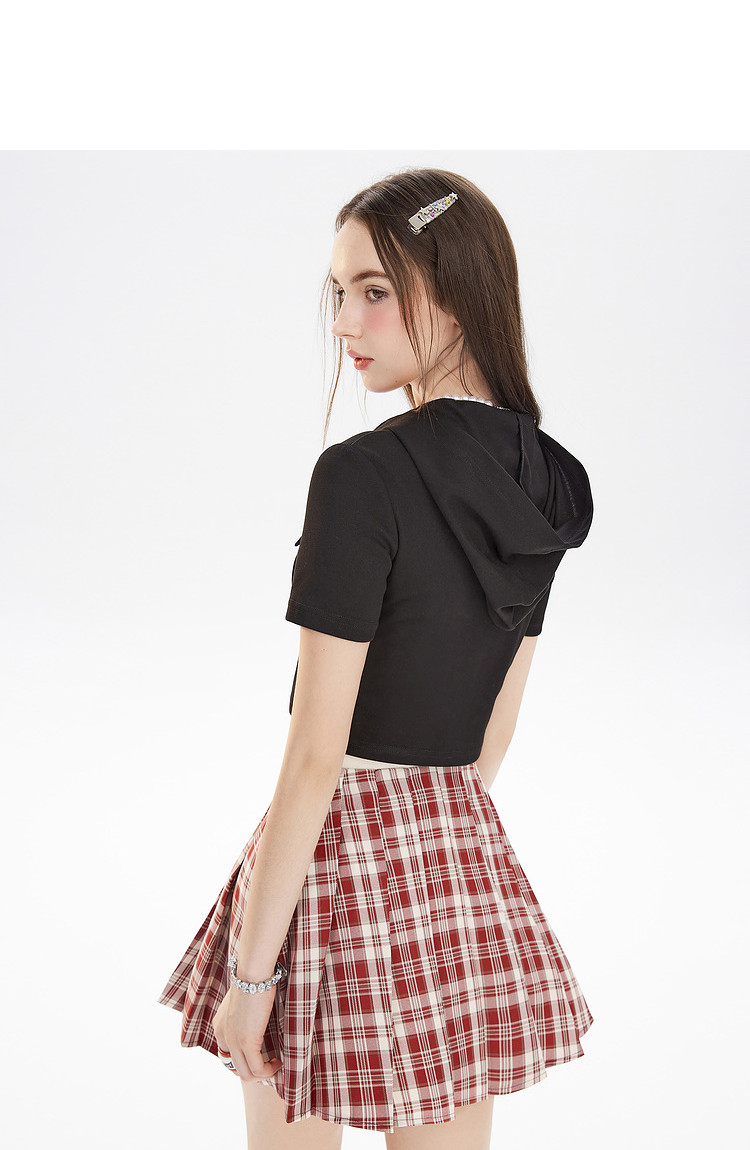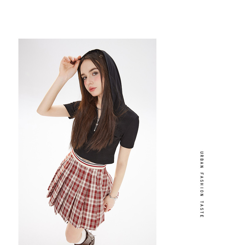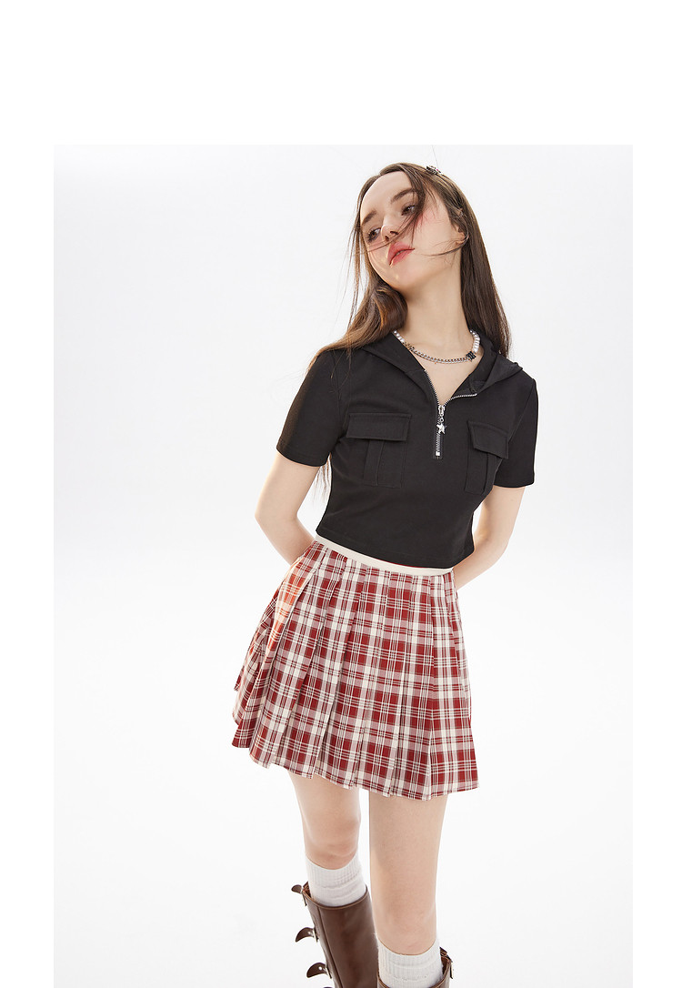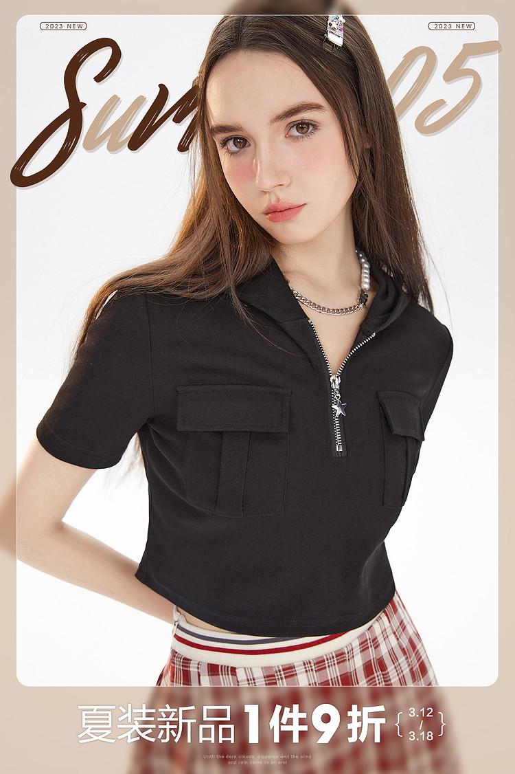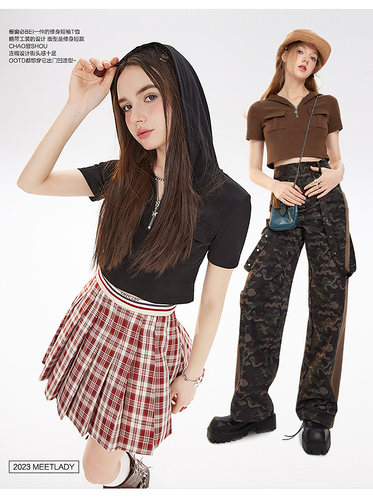 商品名称:夏装奶系炸街短袖t恤女修身拉链连帽辣妹上衣 748244