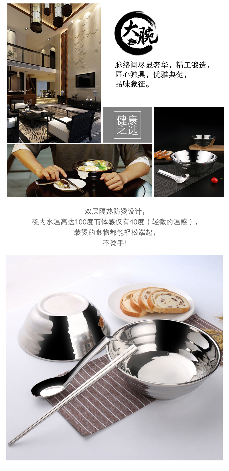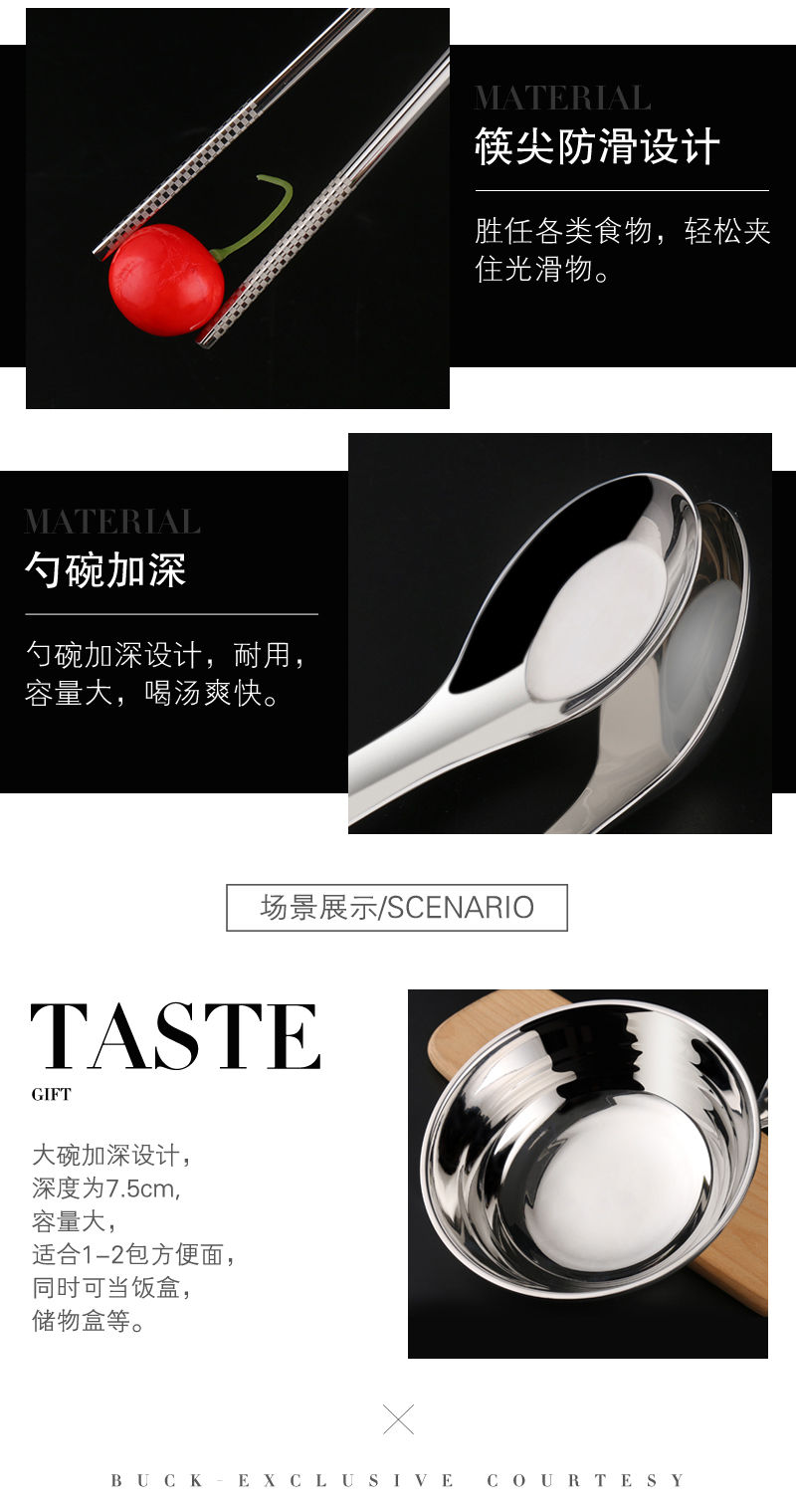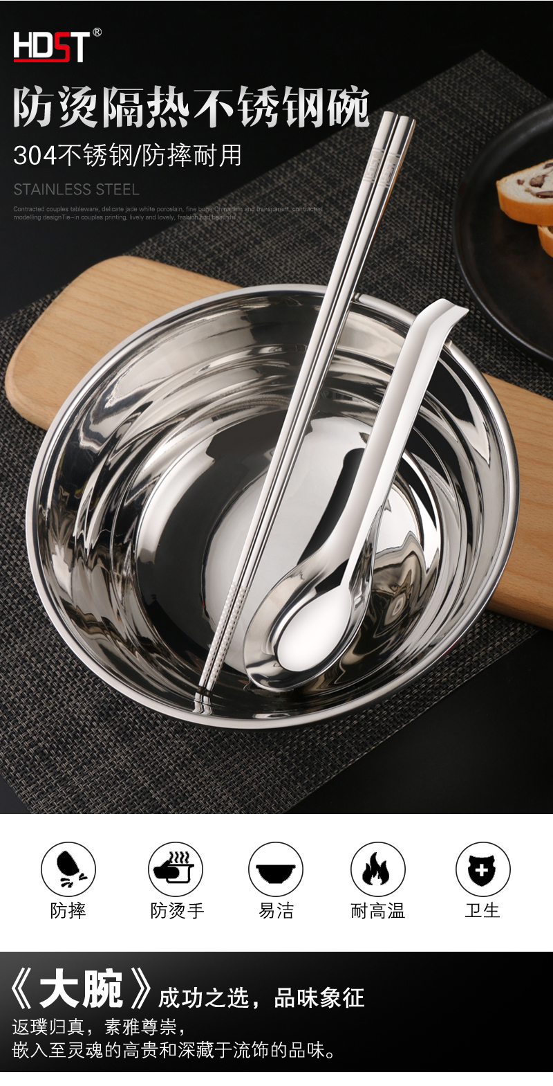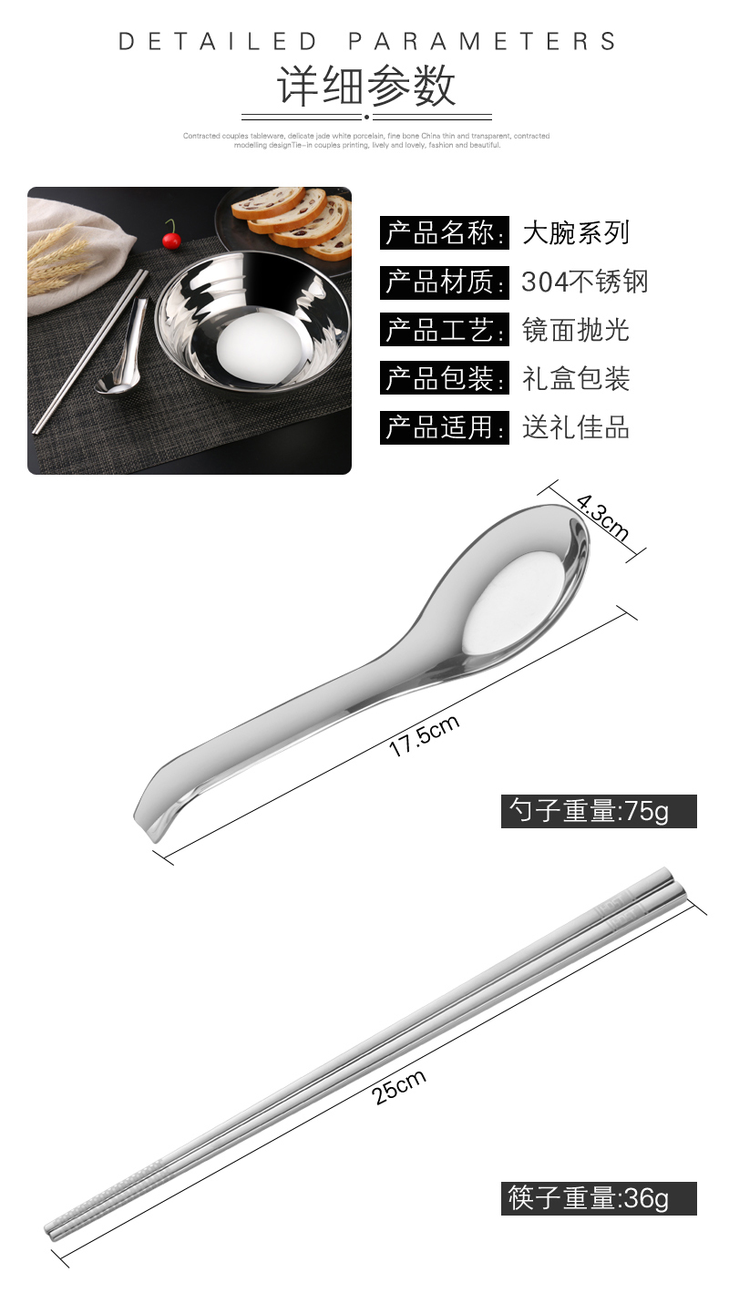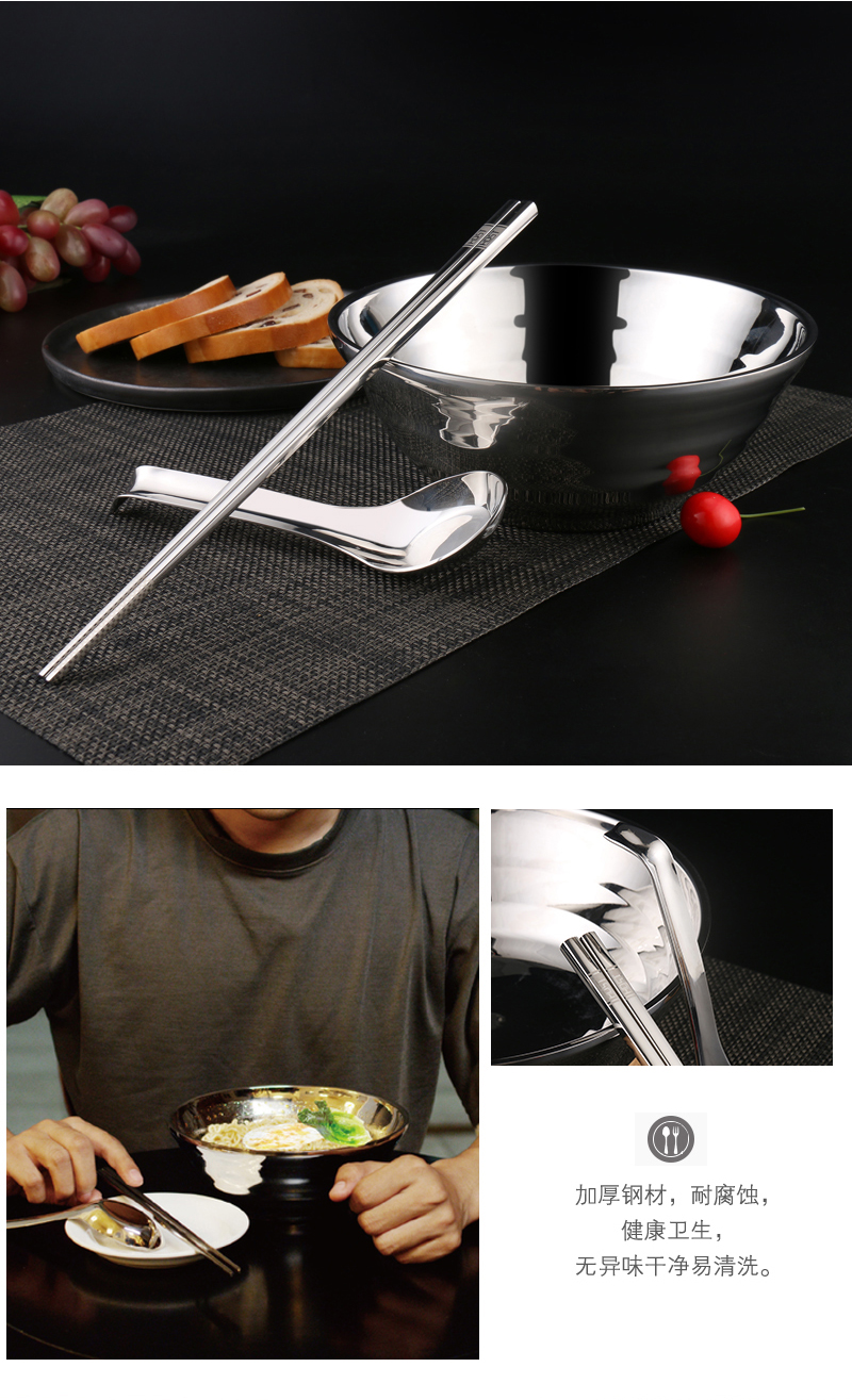 商品名称:HDST/华典世通大腕系列304不锈钢碗勺筷三件套餐具套装DW-20147