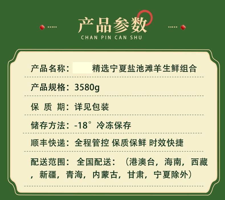 商品名称:【顺丰配送】宁鲜汇赤豪精选宁夏盐池滩羊生鲜礼盒3580g