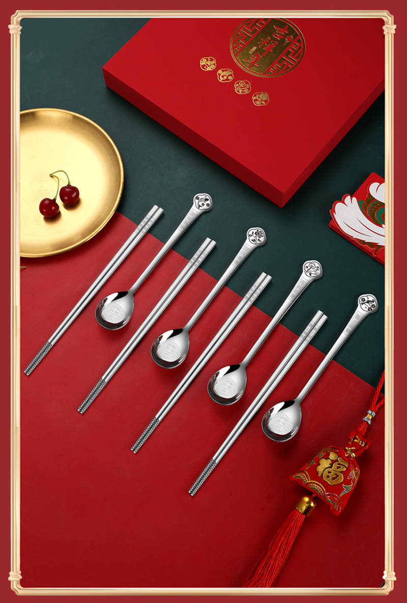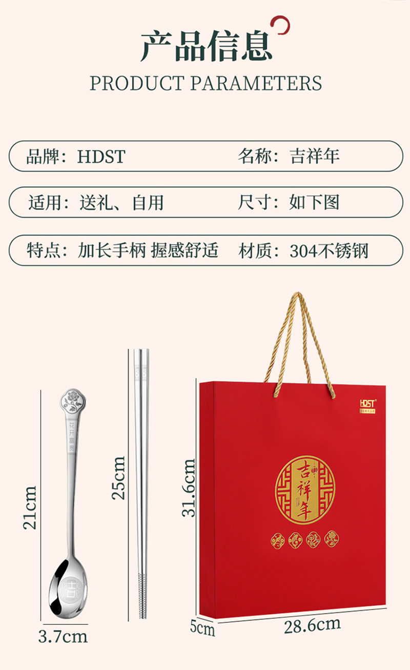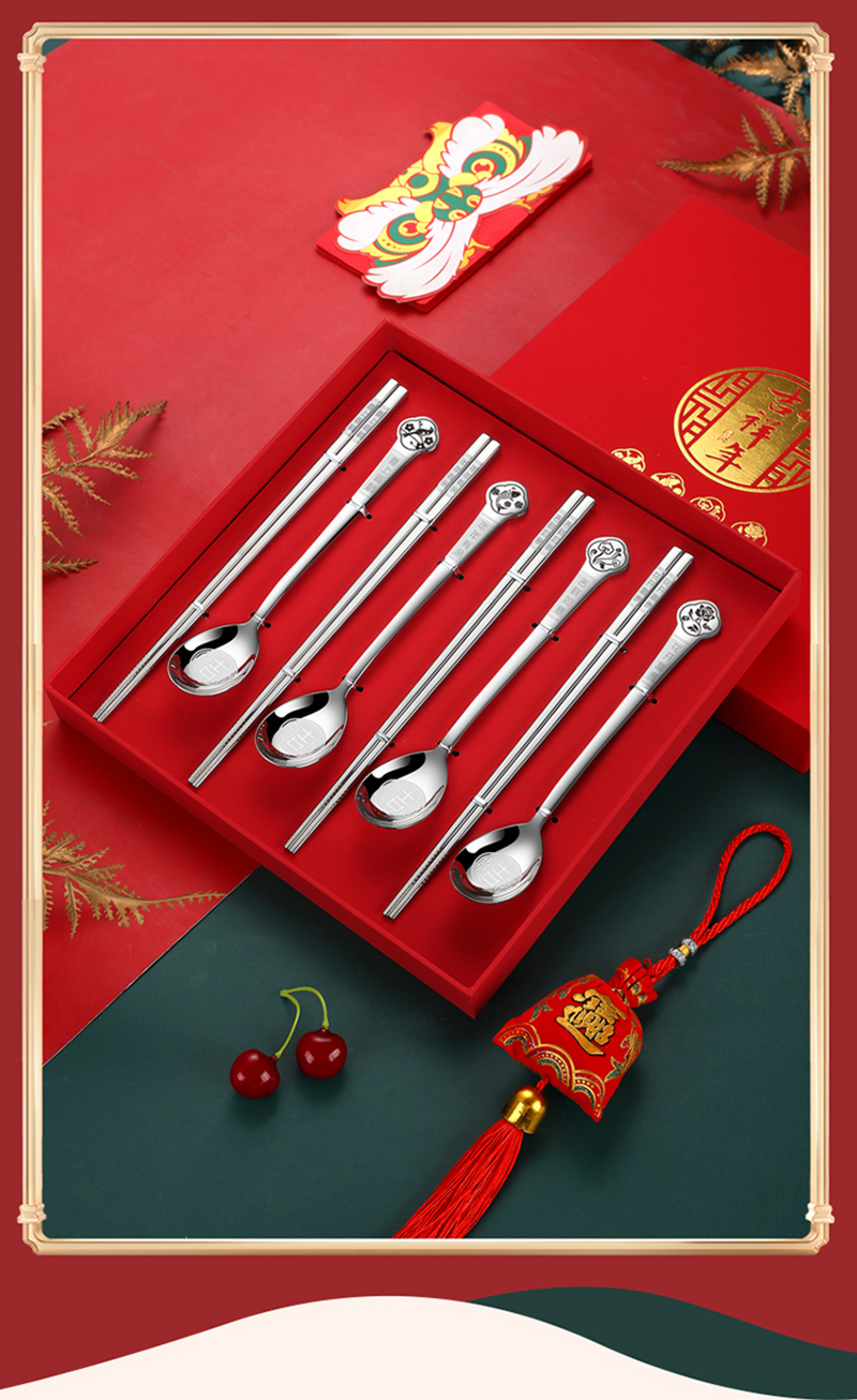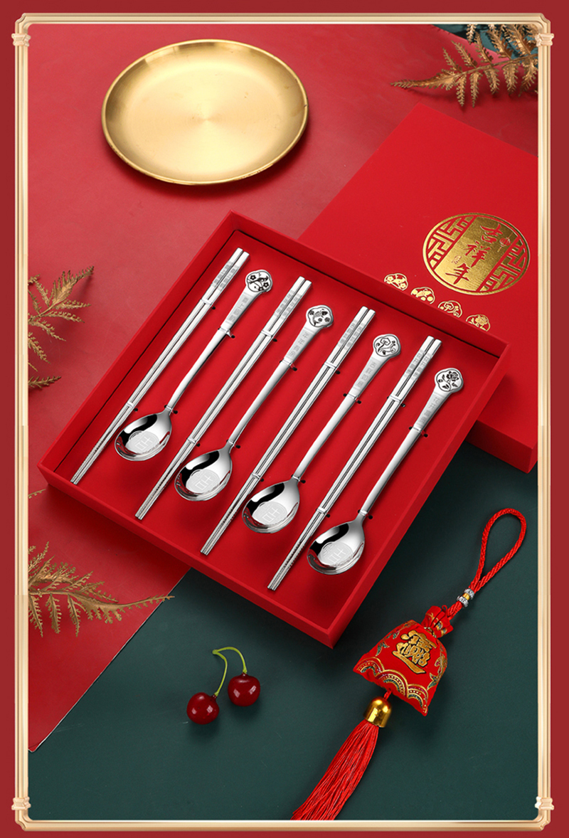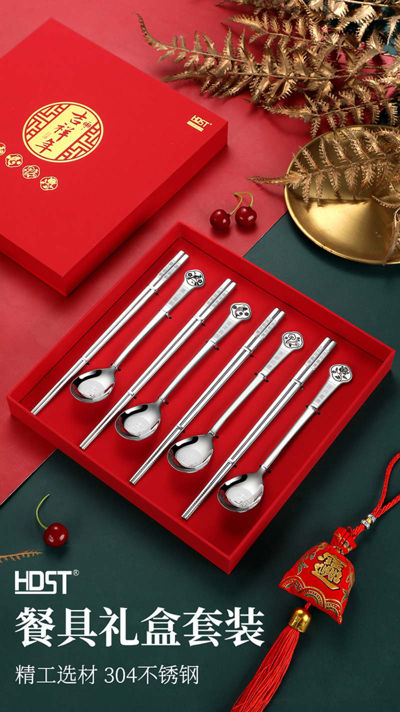 商品名称:HDST/华典世通吉祥年304不锈钢餐具八件组礼盒套装JX-23011