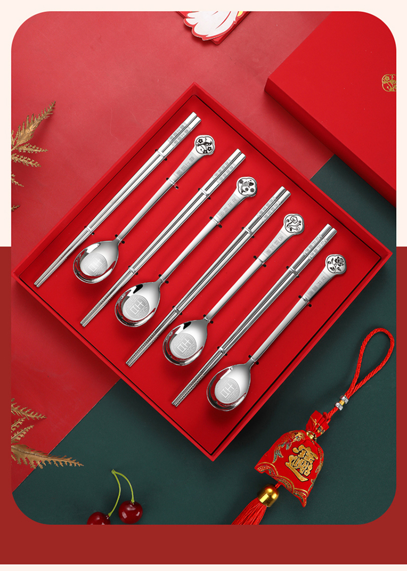 HDST/华典世通吉祥年304不锈钢餐具八件组礼盒套装JX-23011