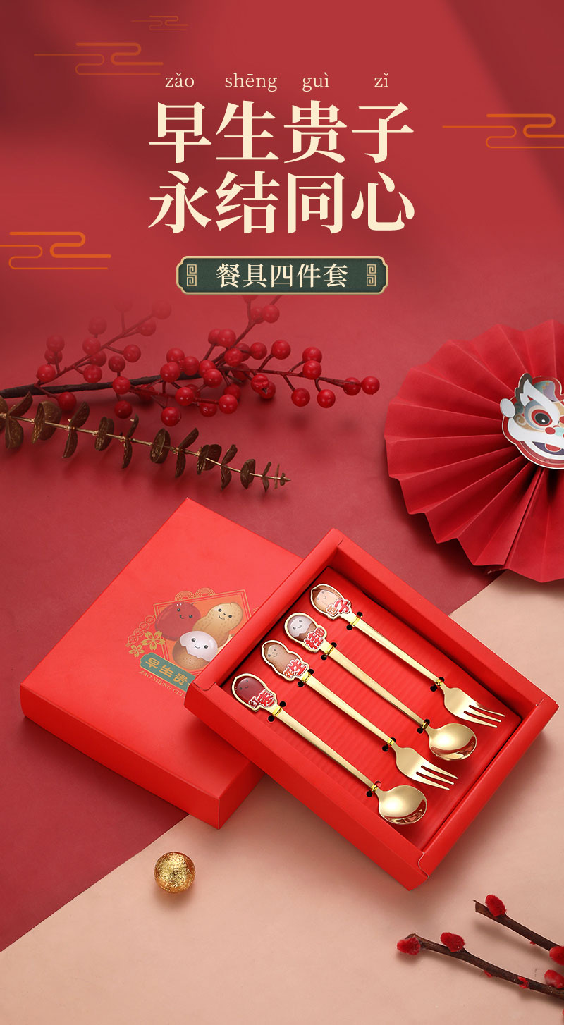 商品名称:HDST/华典世通早生贵子叉勺餐具四件套ZS-22034