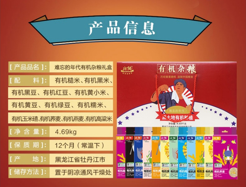 商品名称:北纯难忘的年代有机杂粮礼盒4.69kg