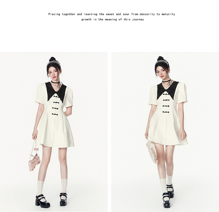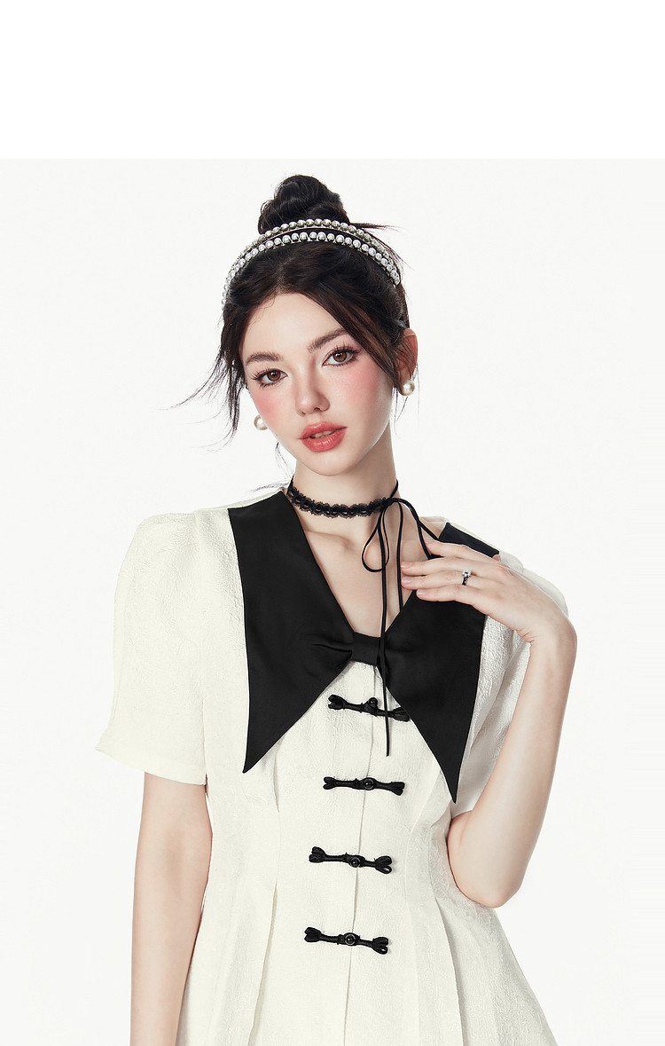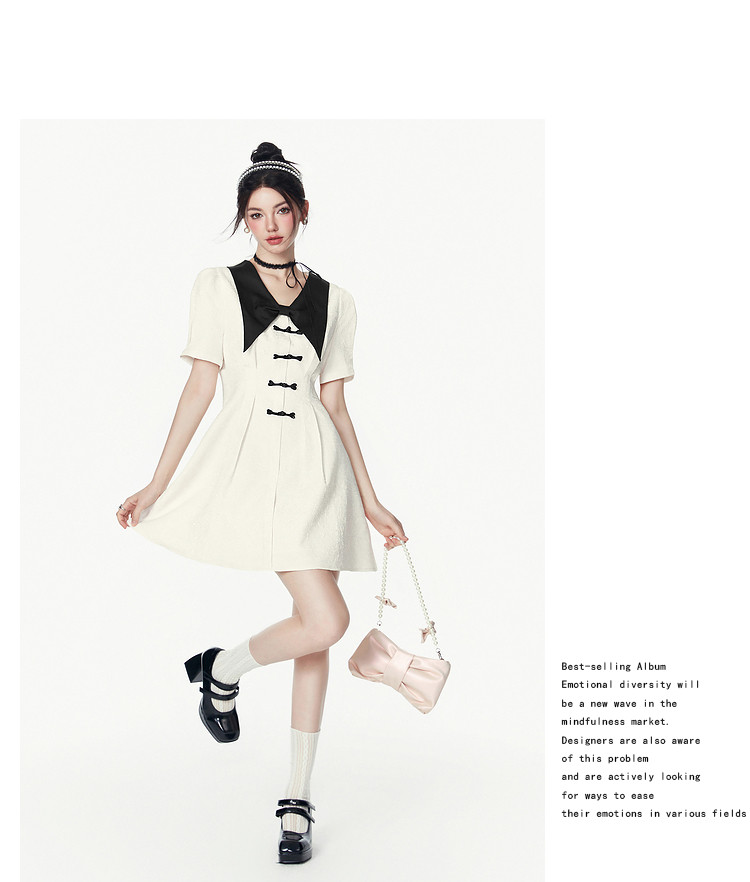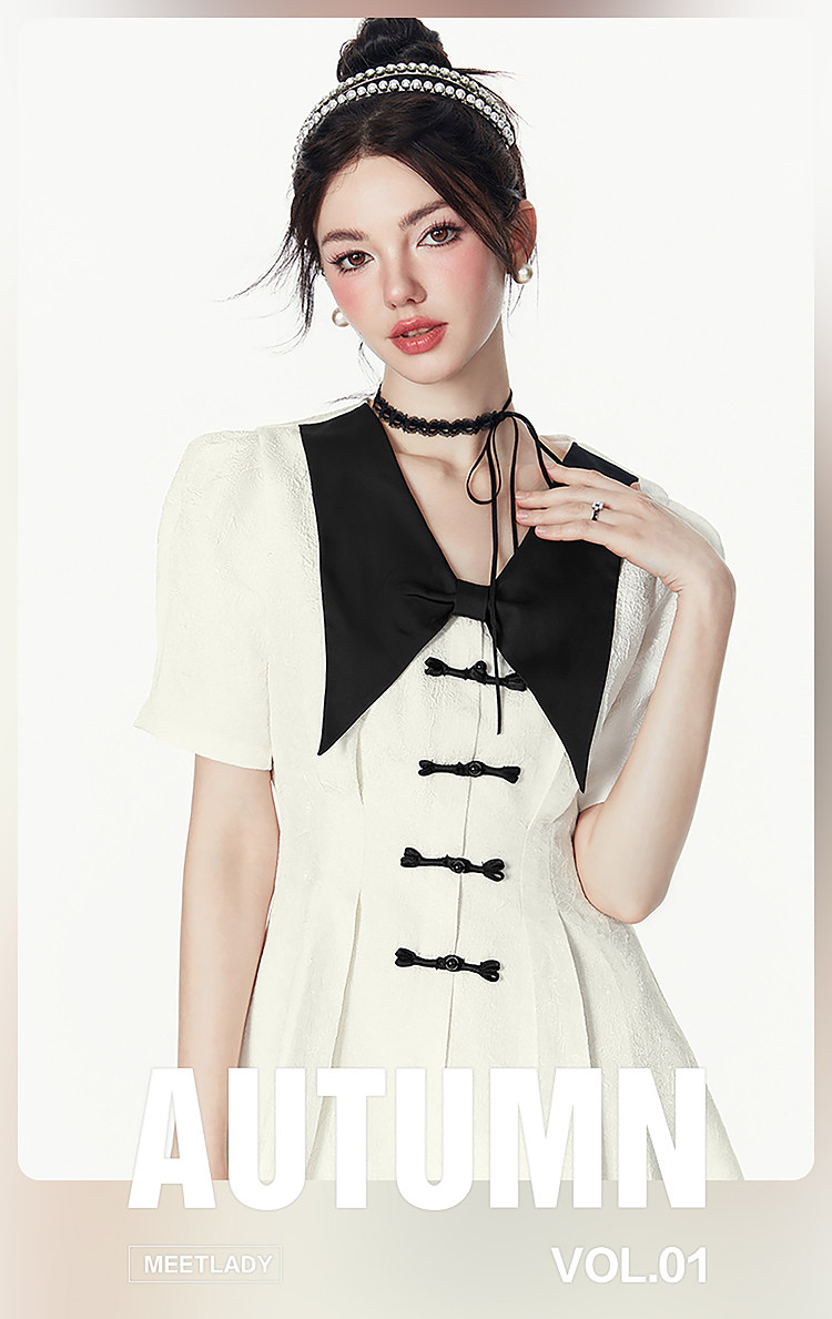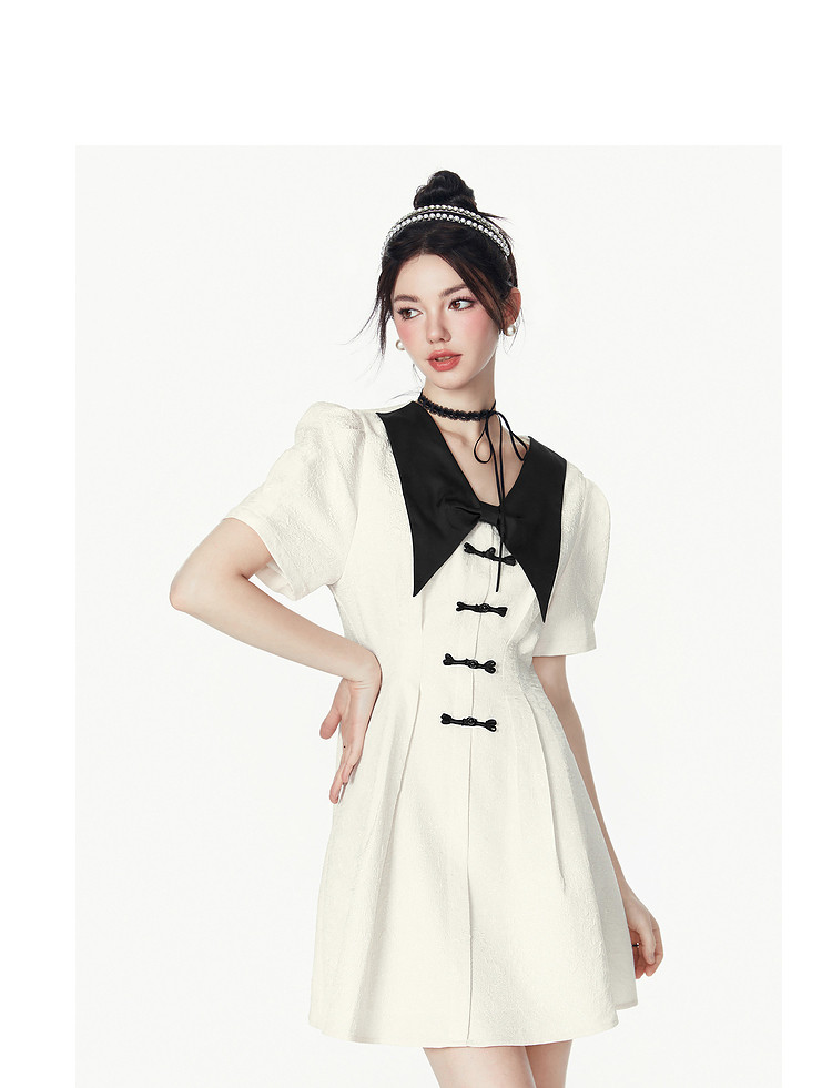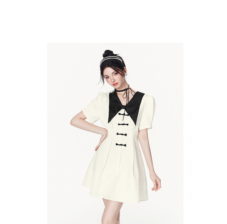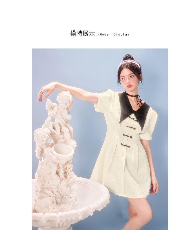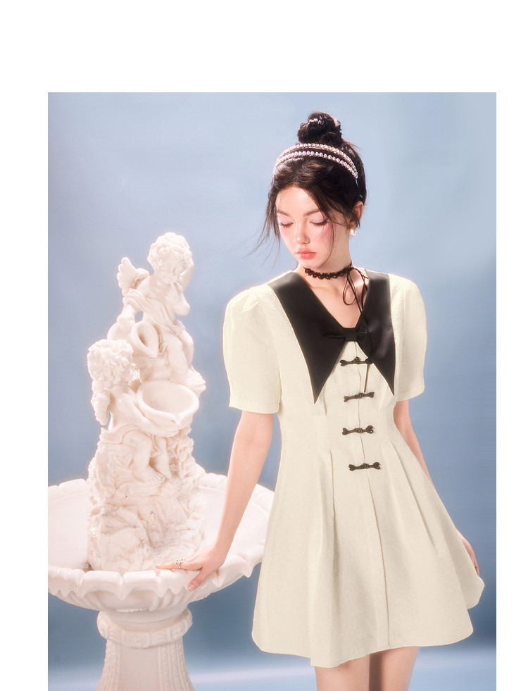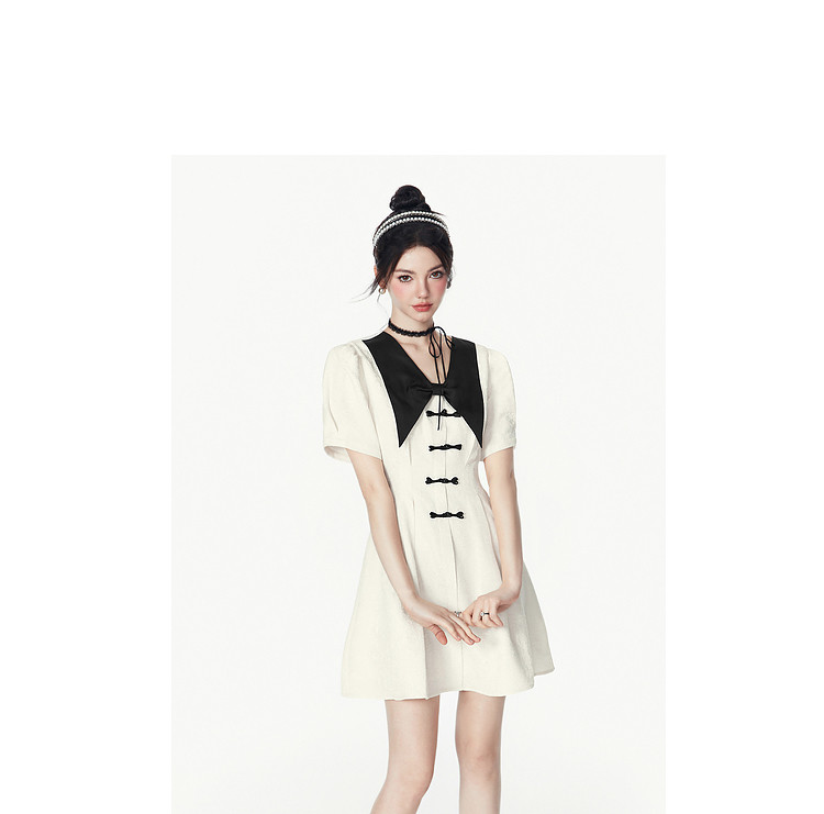 夏装甜美千金风蝴蝶结元素气质V领纯色连衣裙 328340
