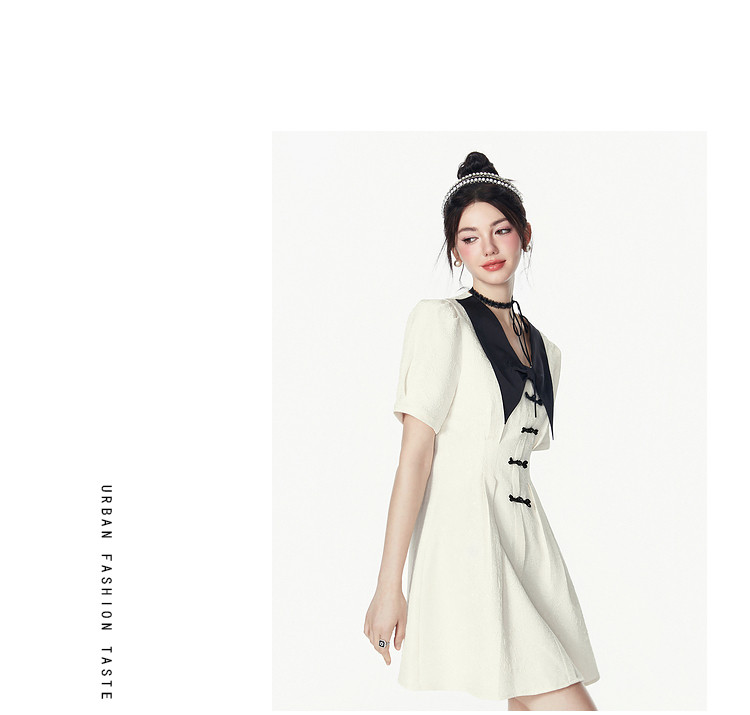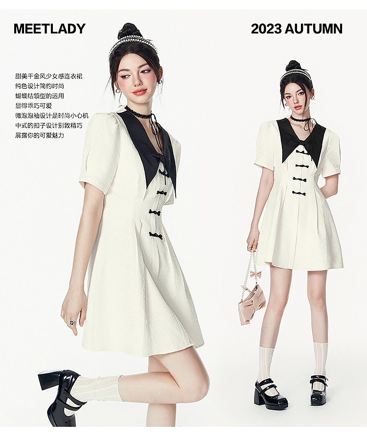 商品名称:夏装甜美千金风蝴蝶结元素气质V领纯色连衣裙 328340