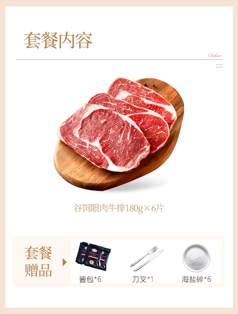 商品名称:【顺丰配送】赤豪原切安格斯谷饲眼肉牛排180g*6片