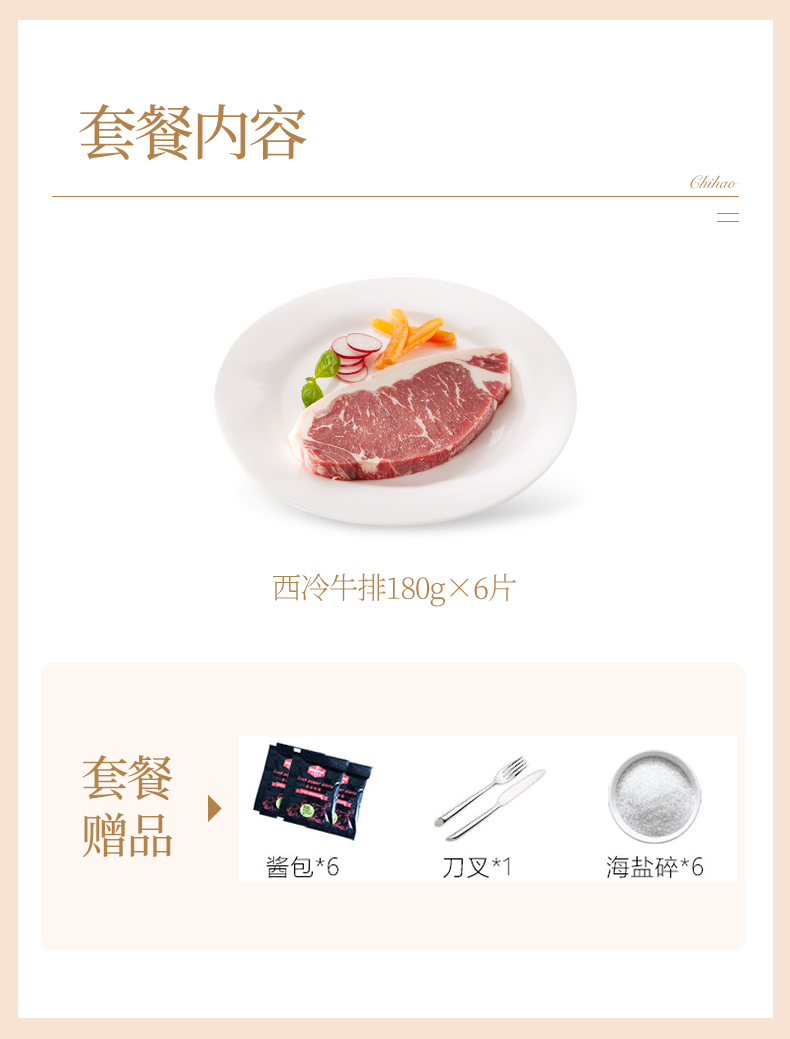 商品名称:【顺丰配送】赤豪原切安格斯谷饲西冷牛排180g*6片