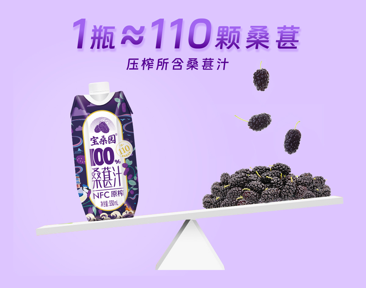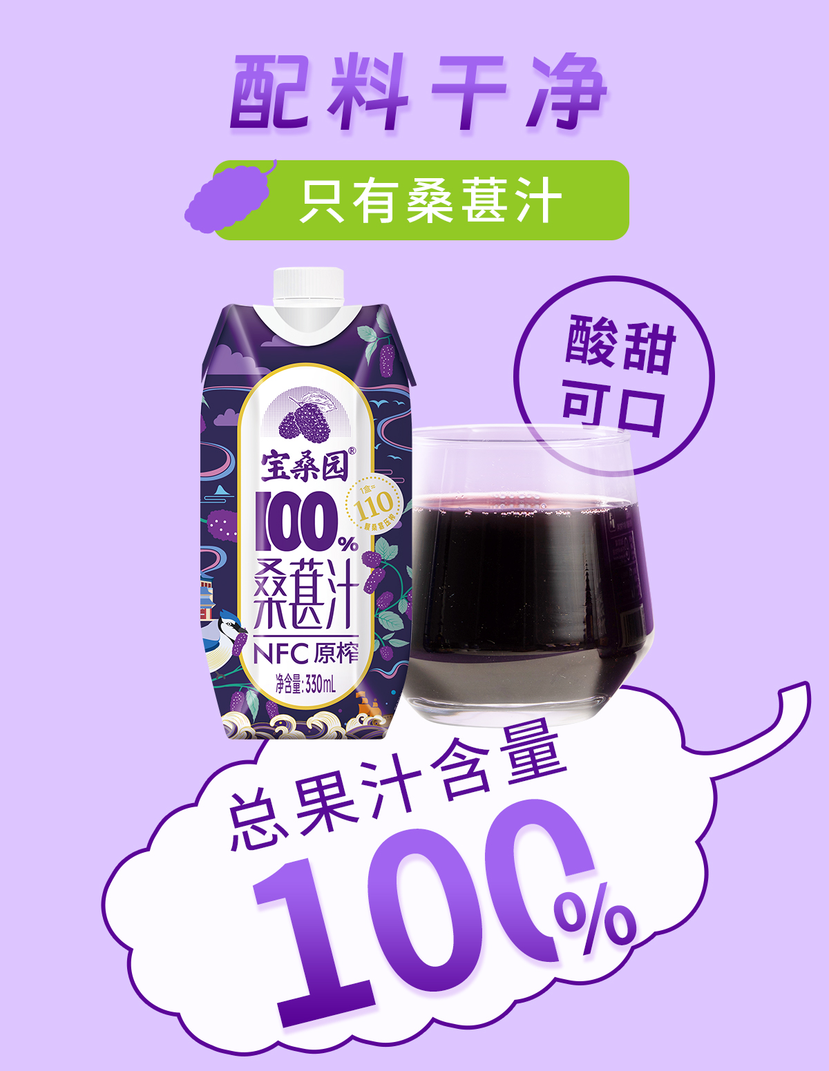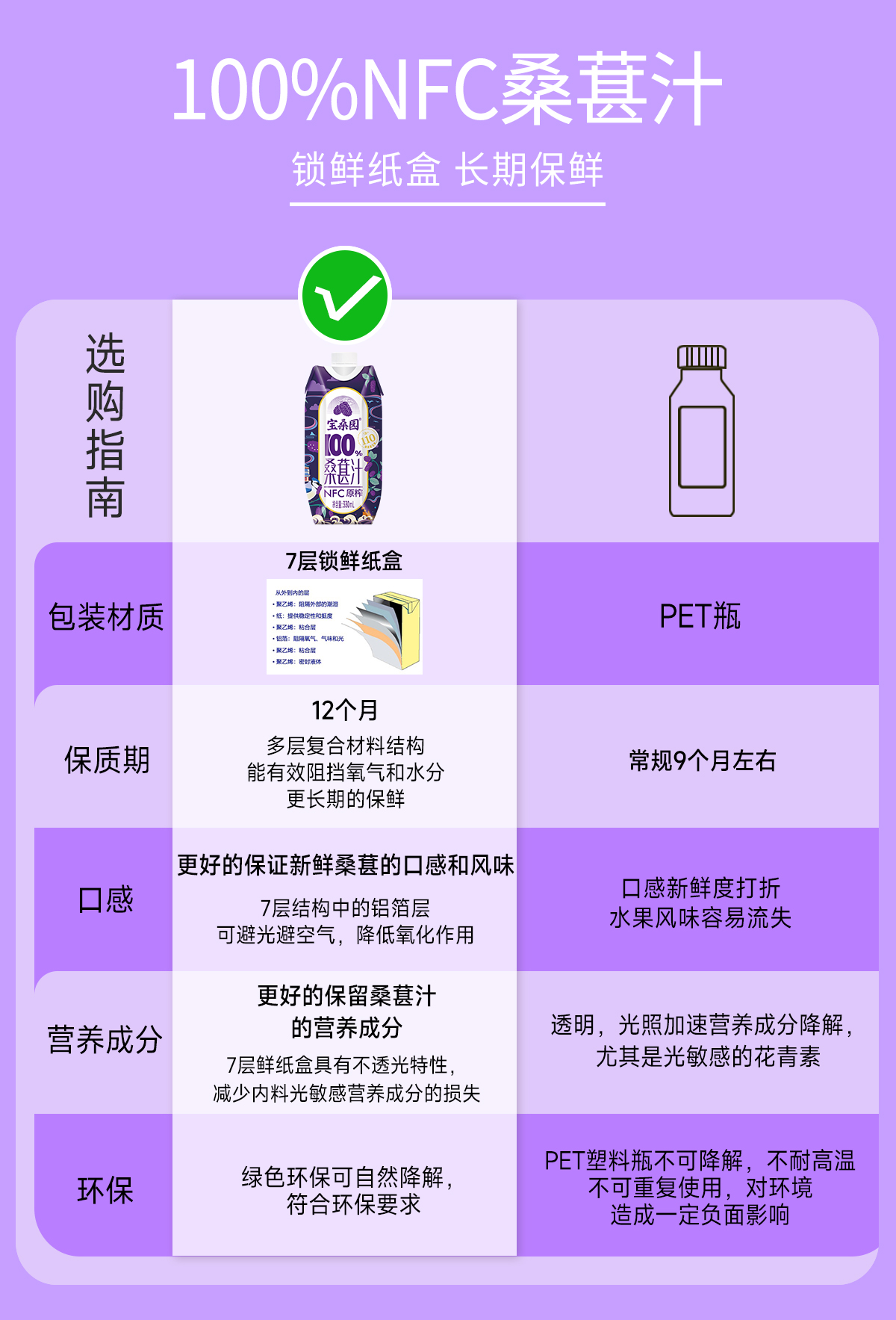 商品名称:宝桑园100%原榨桑葚汁整箱330ml*12盒
