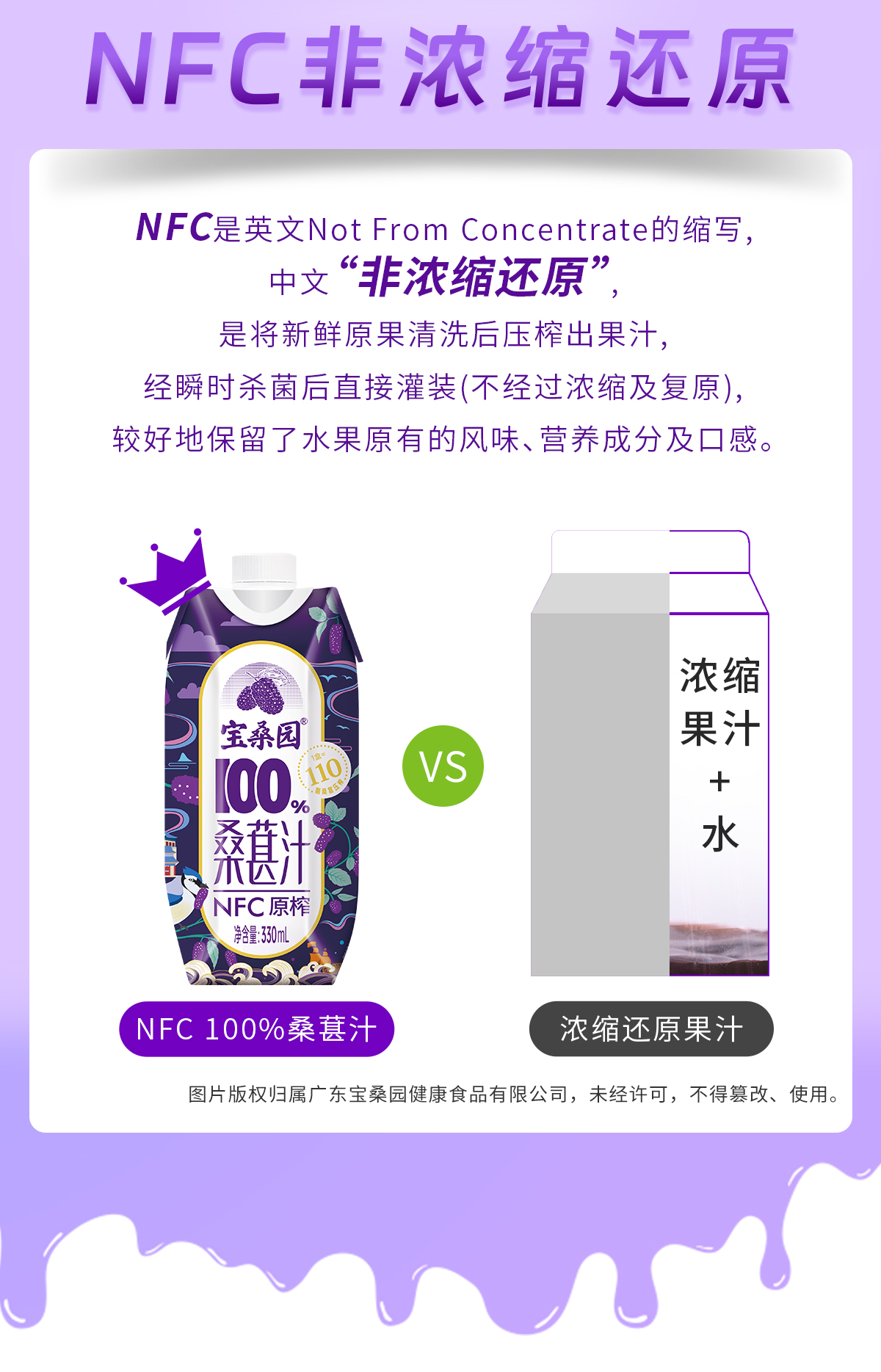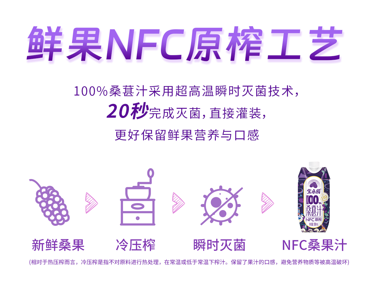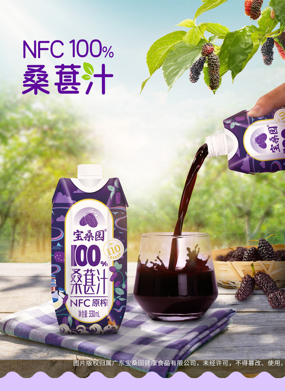 商品名称:宝桑园100%原榨桑葚汁整箱330ml*12盒
