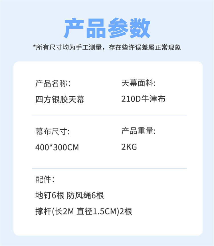 商品名称:趣游帮牛津布四方银胶天幕YB12-12M